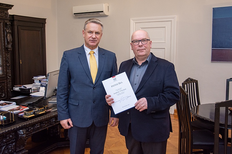 Andris Vītols saņem KM Pateicības rakstu