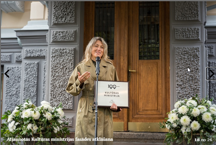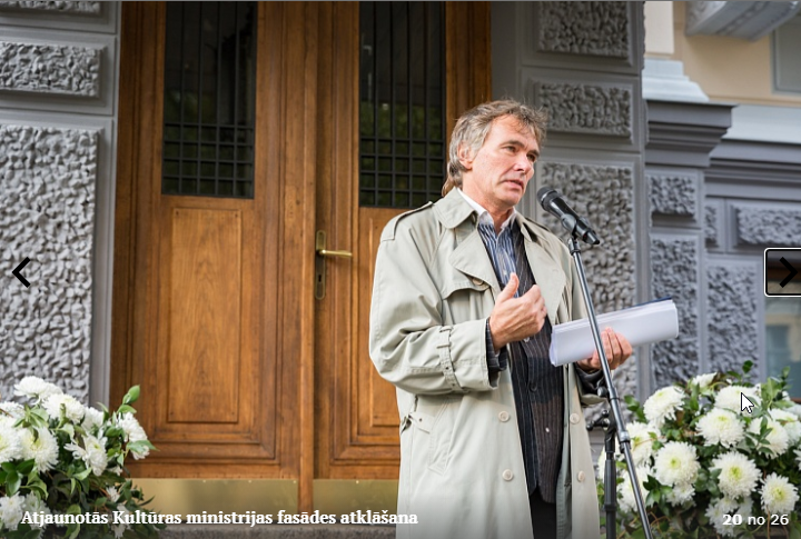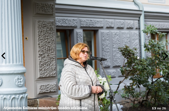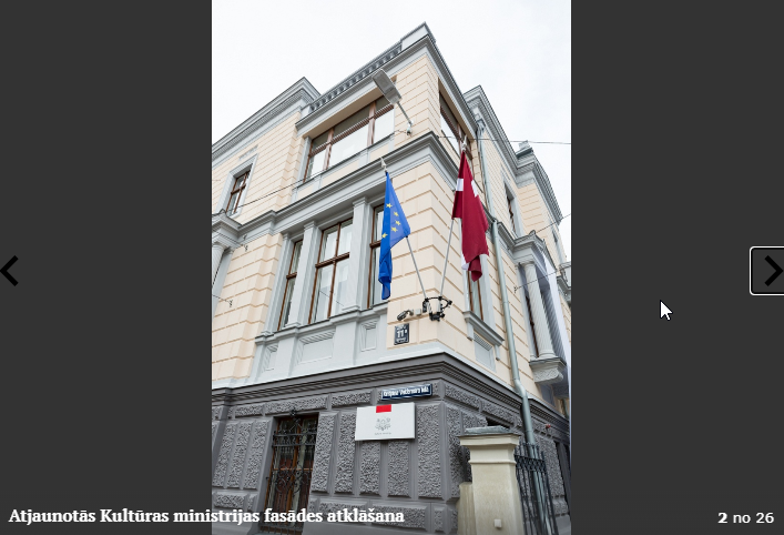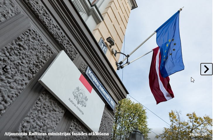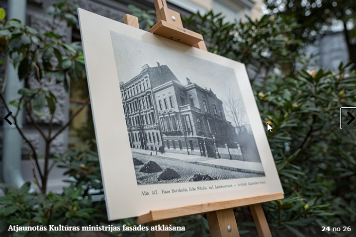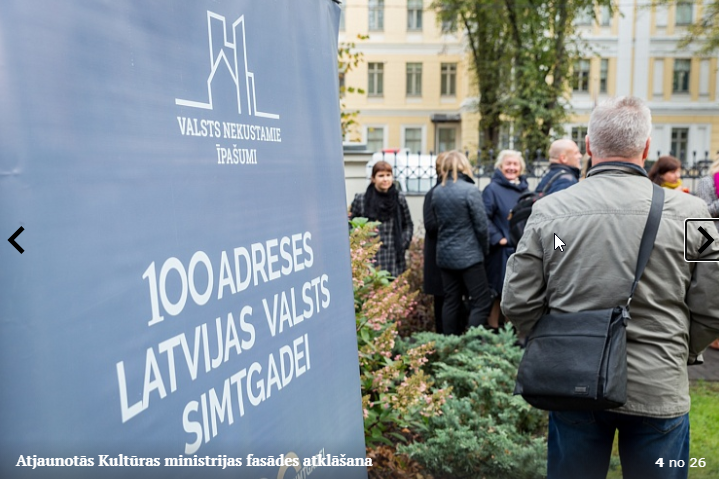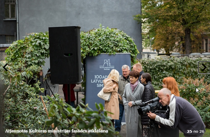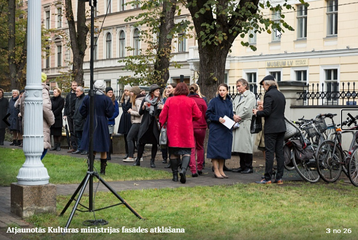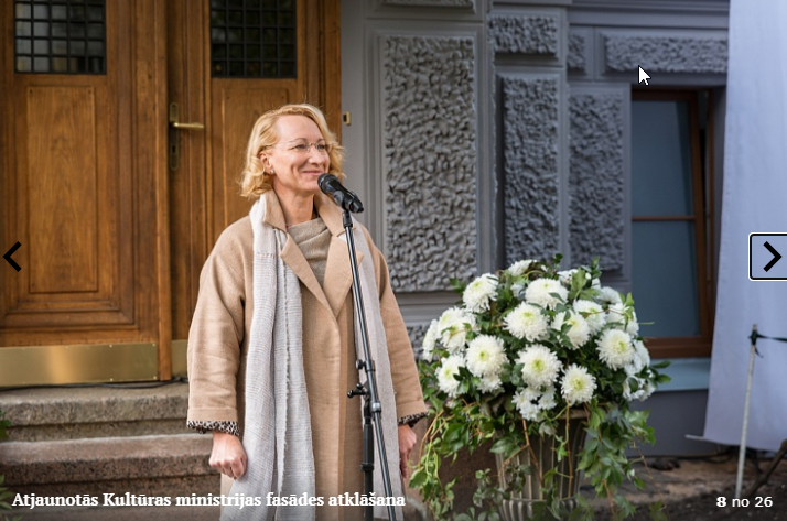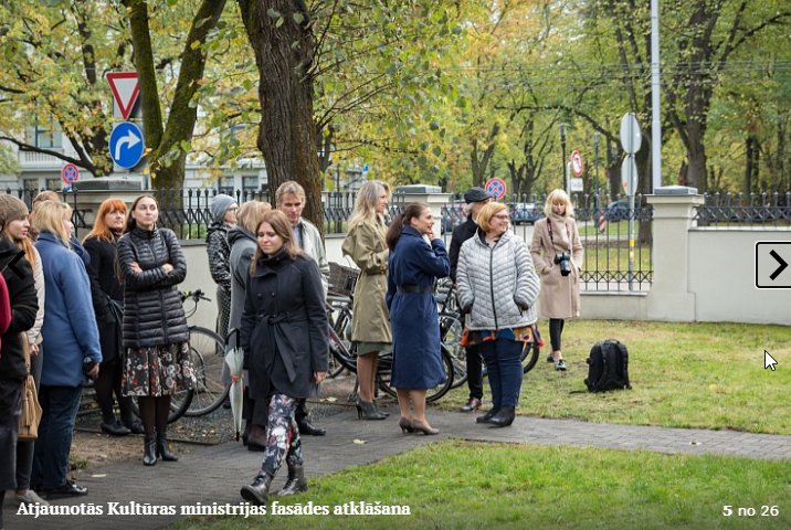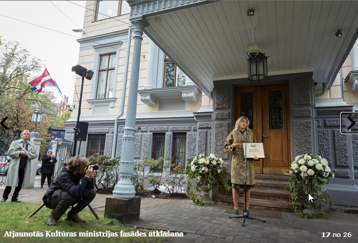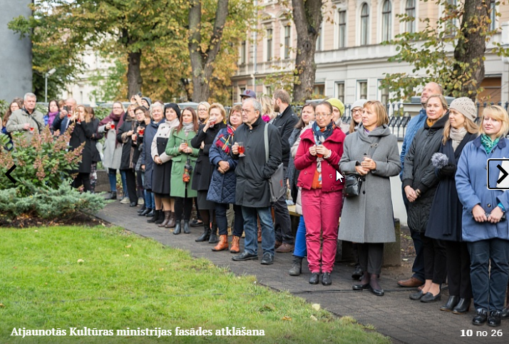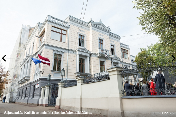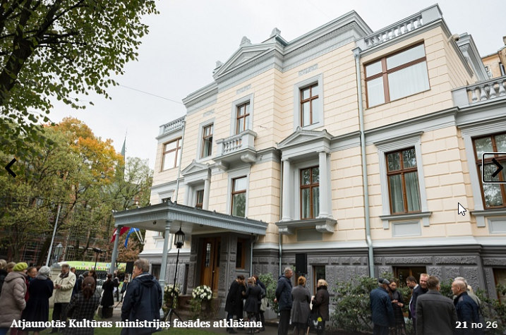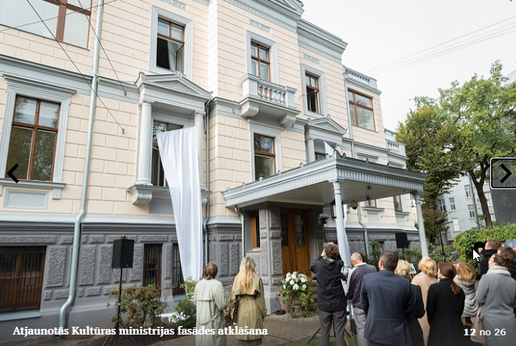 Piektdien, 5.10. tika atklāta Kultūras ministrijas ēkas Kr. Valdemāra ielā 11a atjaunotā fasāde. Atklāšanā piedalījās kultūras ministre Dace Melbārde, Kultūras ministrijas valsts sekretāre Dace Vilsone un VNĪ valdes locekle Kitija Gruškevica. Kultūras ministrijas fasādes atjaunošana sakrīt ar nama 145 gadu jubileju – tagad tas ir atguvis sākotnējo spozmi, kādu to bija iecerējis šīs ēkas autors, viens no Rīgas ievērojamākajiem 19. gadsimta arhitektiem Heinrihs Šēls.
