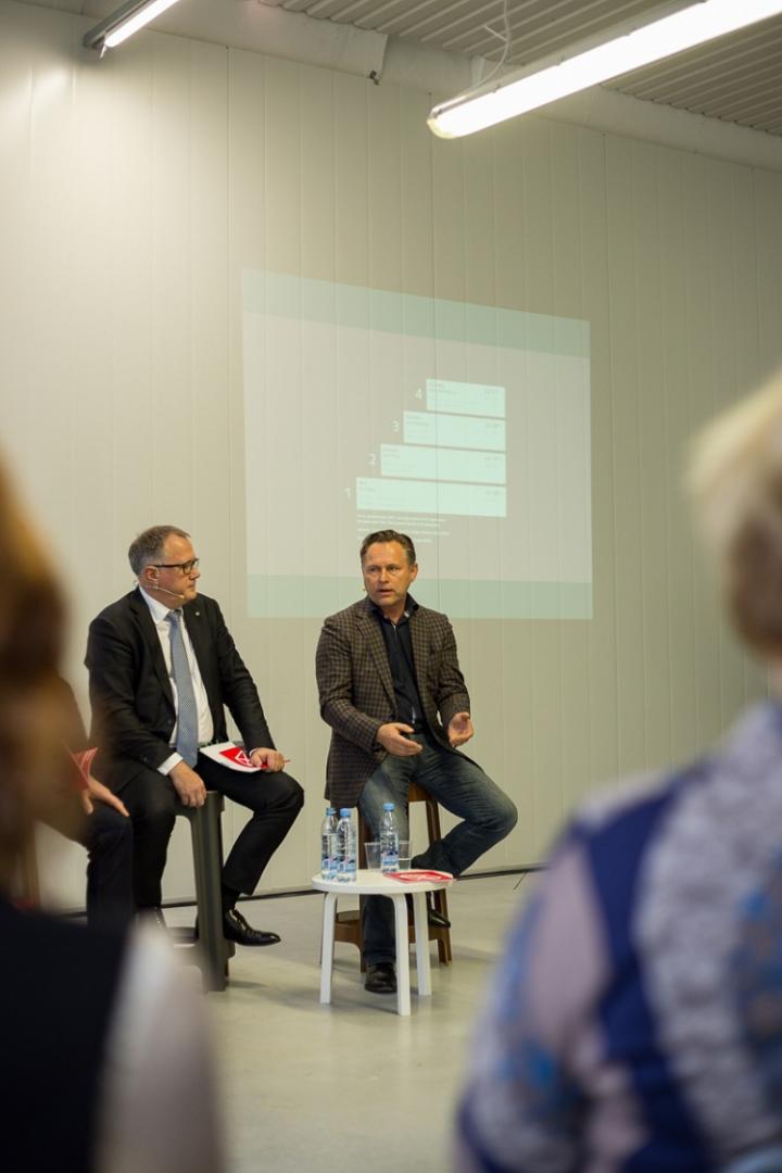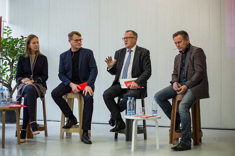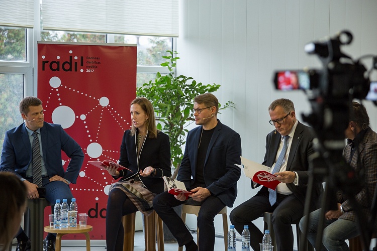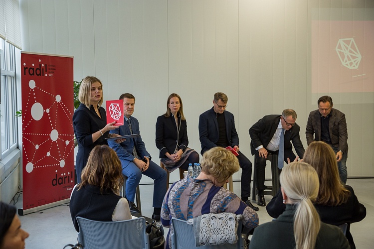 - Diskusijā piedalījās ekonomikas ministrs Arvils Ašeradens, dizainers un uzņēmējs, uzņēmuma „Rīgas Krēslu fabrika” valdes priekšsēdētājs Aldis Circenis, dizaina biroja H2E CEO / vadošais dizainers Holgers Elers, uzņēmuma ”Felici” īpašniece Alise Balgalve un LMT Mārketinga komunikāciju dienesta direktors Normunds Zalpēteris. Sarunu vadīja žurnāliste Ilze Dobele.