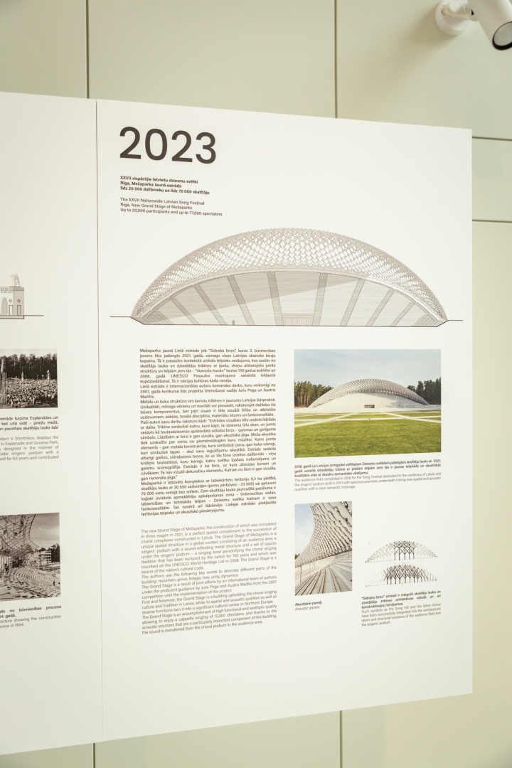 5. maijā Mežaparka estrādes paviljonā notika svinīgā Dziesmusvētku būvju ekspozīcijas atklāšana.