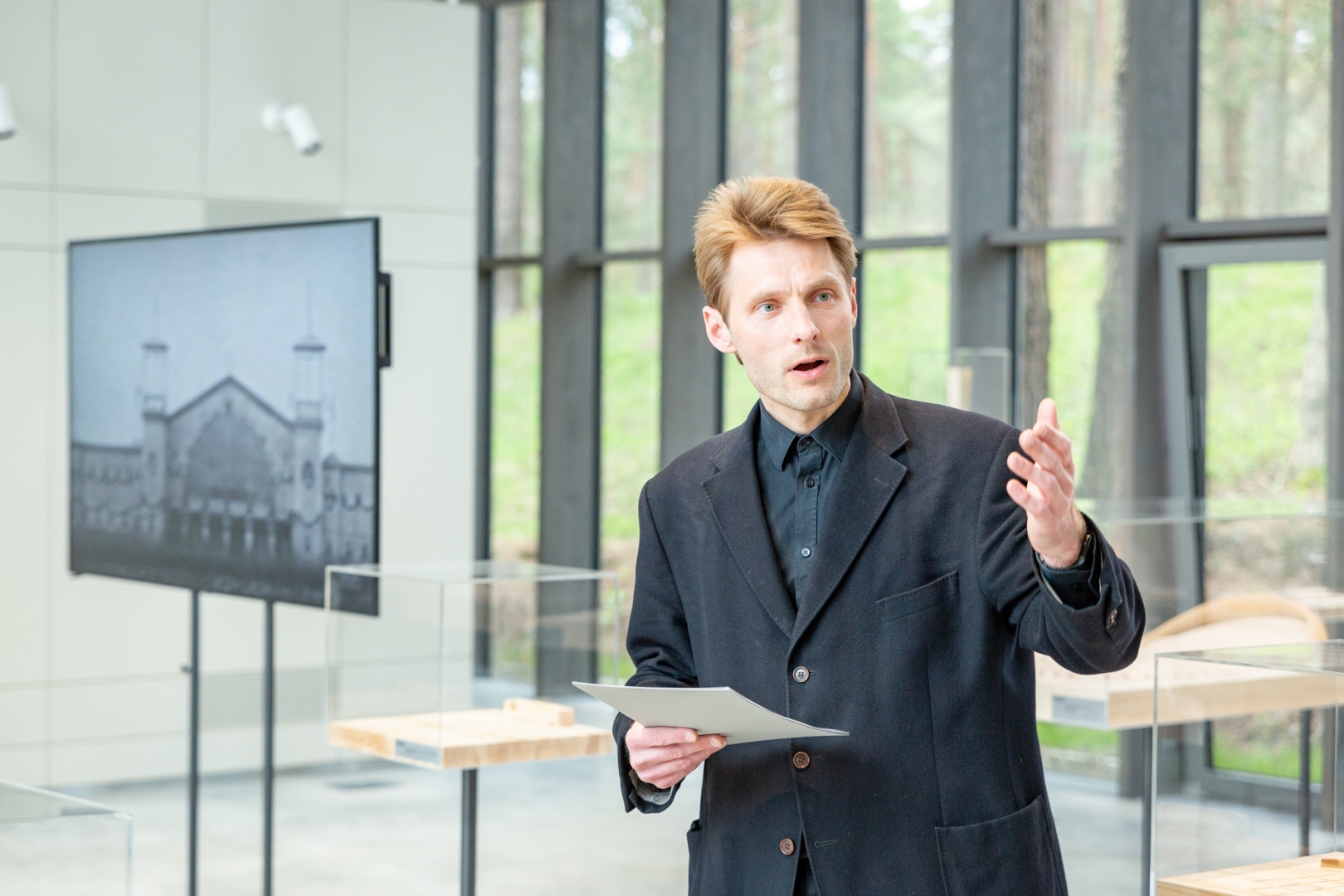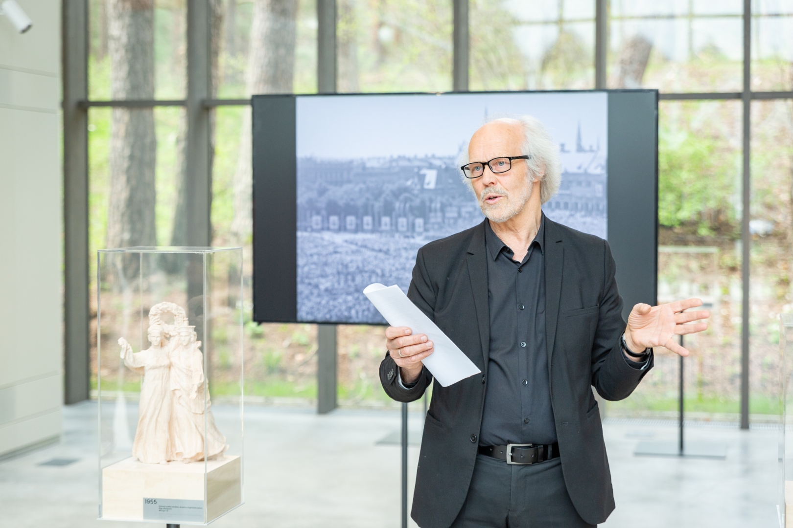 Dziesmusvētku būvju ekspozīcijas atklāšanā Mežaparka estrādes paviljonā