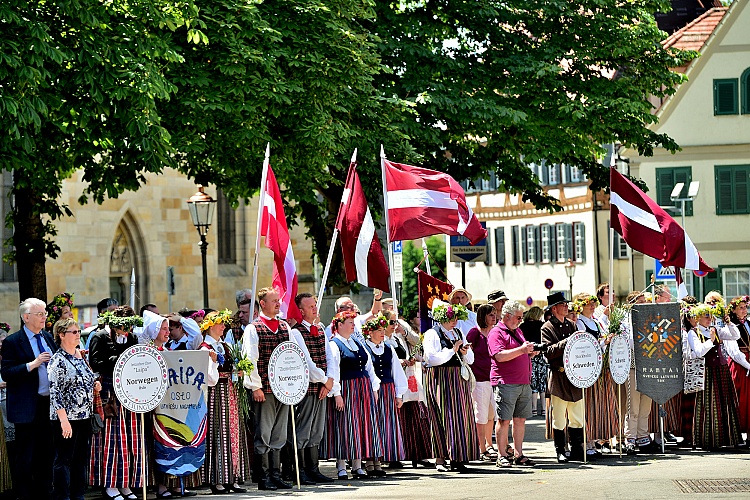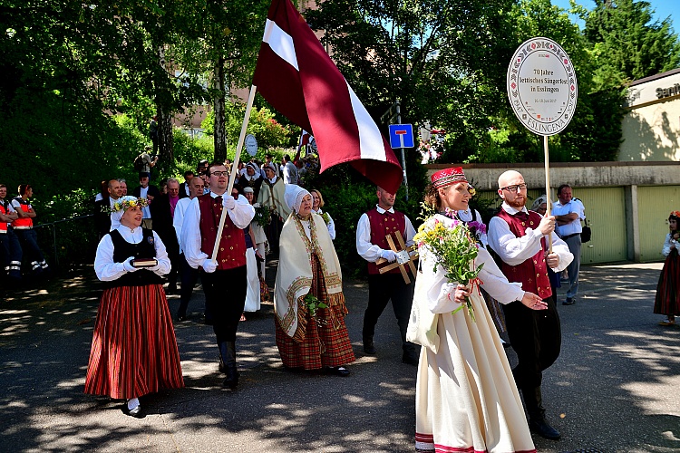 - Pēc dievkalpojuma notika dalībnieku gājiens, kas, plīvojot Latvijas karogiem un skanot dziesmām, vijās caur Eslingenas ielām, kurās savulaik dzīvojuši un strādājuši latvieši.