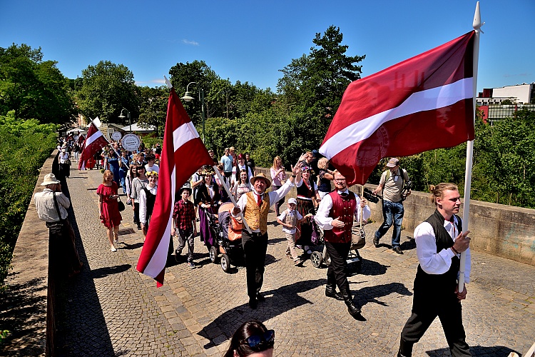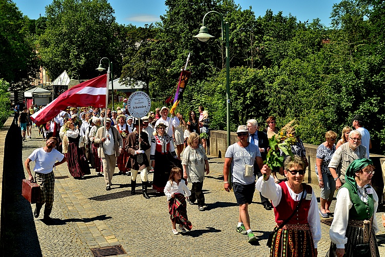 - Svētku gājiens noslēdzās pilsētas tirgus laukumā, pulcējot dalībniekus uz svētku atklāšanas koncertu.