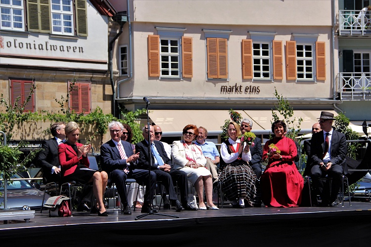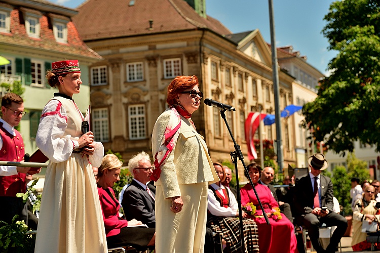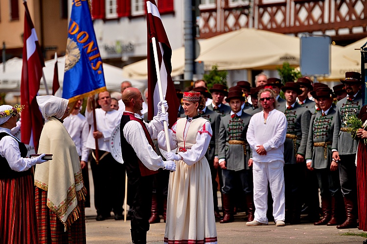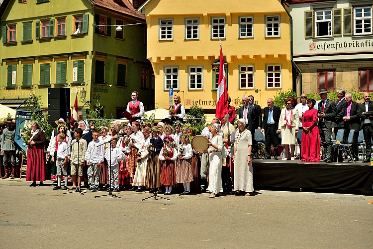 - Svētku programma 16. jūnija rītā tika atklāta ar svinīgo dievkalpojumu Eslingenas Dienvidu baznīcā, kura bijusi nozīmīgs latviešu pulcēšanās centrs jau pēckara gados.