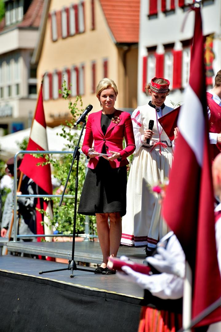 - “Eslingenas Dziesmu svētkiem 70”, kas simboliski iezīmēja Latvijas simtgades notikumus arī Vācijā, klāt bija gan Latvijas Republikas kultūras ministre Dace Melbārde, gan svētku patronese, bijusī valsts prezidente Vaira Vīķe-Freiberga, Latvijas vēstniece Vācijā Elita Kuzma, Ārlietu ministrijas Speciālo uzdevumu vēstnieks diasporas jautājumos Atis Sjanīts, kā arī svētku dalībniekus sveica Eslingenas pilsētas mērs Dr. Markuss Rābs (Markus Raab), pilsētas Kultūras nodaļas vadītājs Benedikts Stegmaijers (Benedikt Stegmayer) un Bādenes-Virtembergas federālās zemes parlamenta deputāts Volfgangs Drekslers (Wolfgang Drexler).