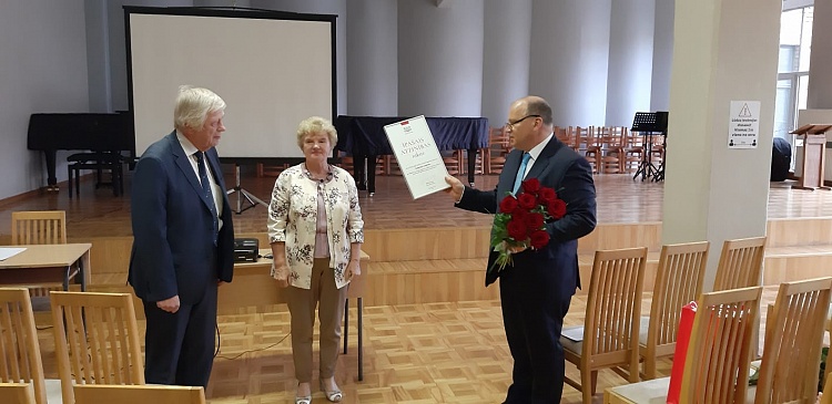KM atzinības rakstu pasniegšana Jāzepa Mediņa Rīgas Mūzikas vidusskolas vadībai