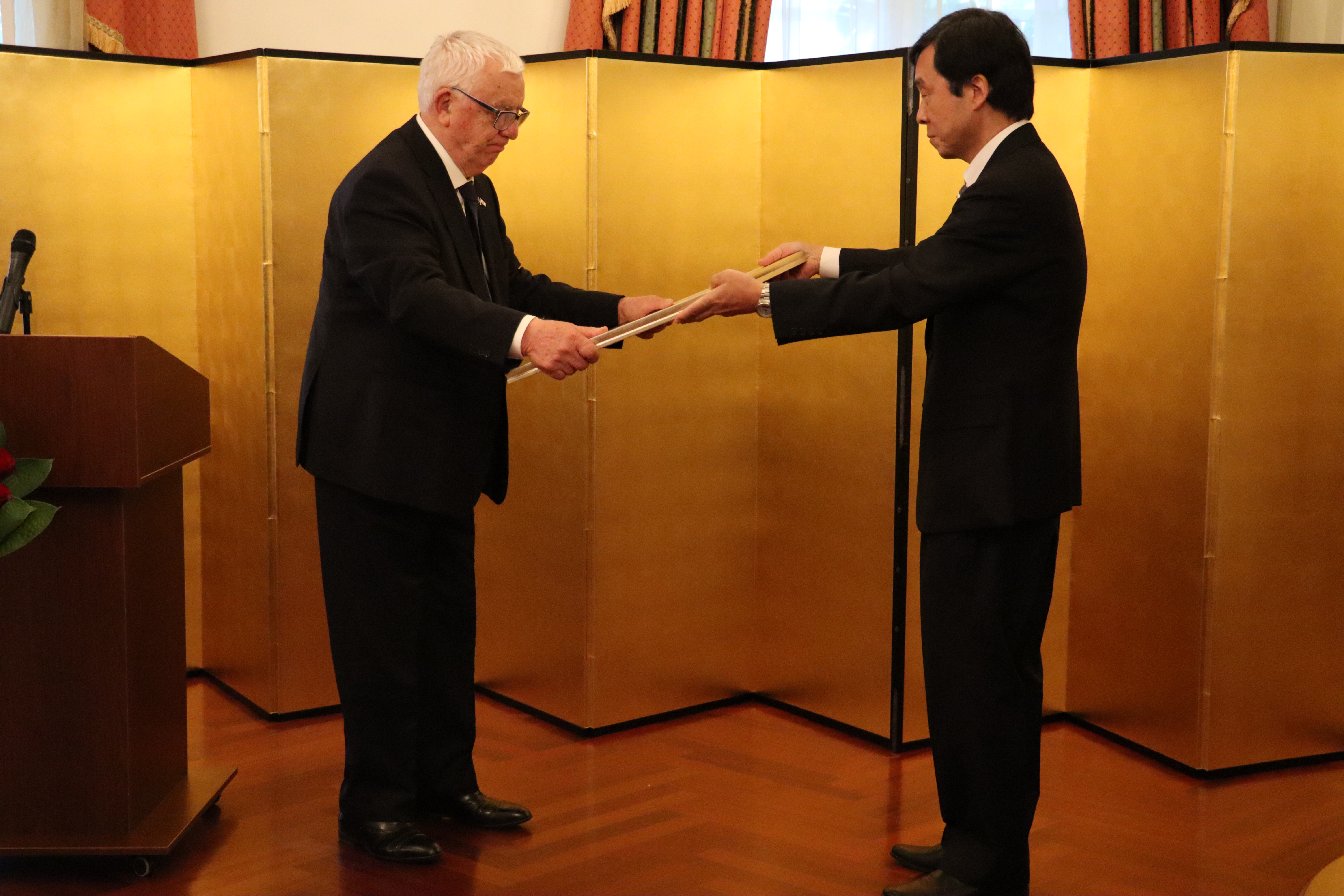 KM parlamentārais sekretārs Ritvars Jansons piedalās Uzlecošās Saules ordeņa un Zelta stari ar kakla lentu pasniegšanas ceremonijā Raimondam Paulam