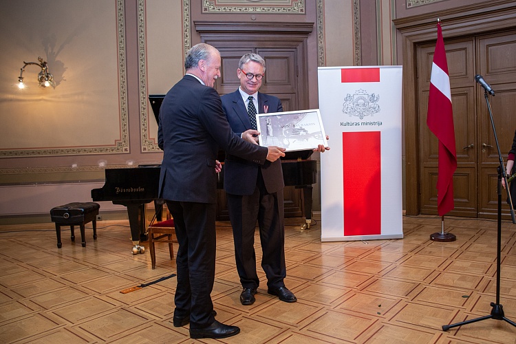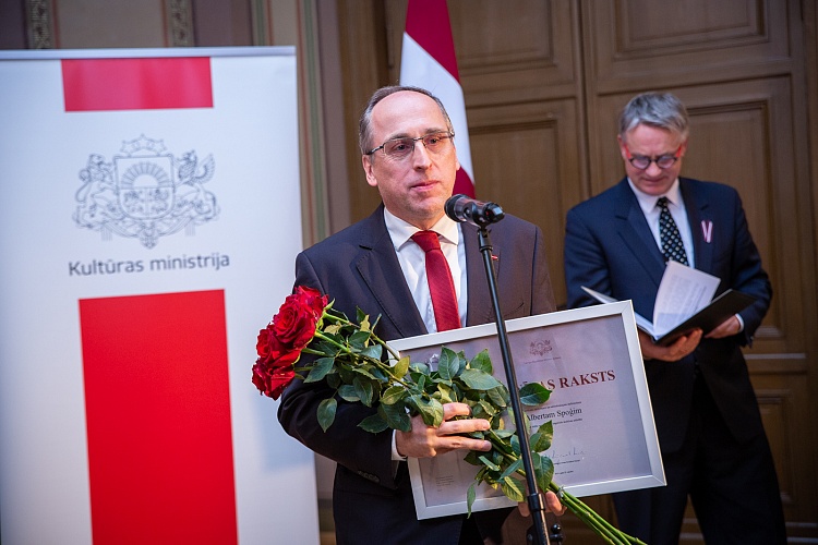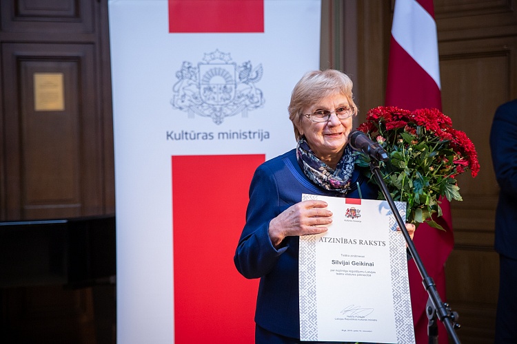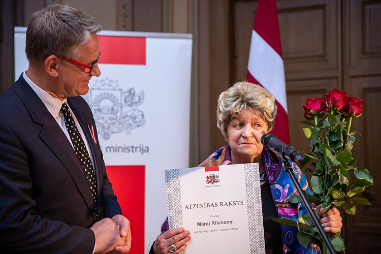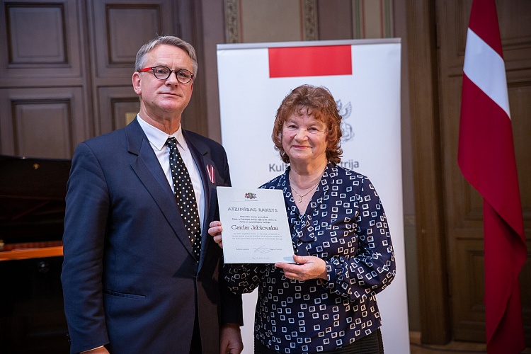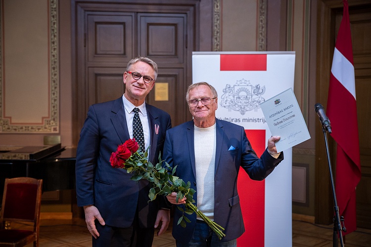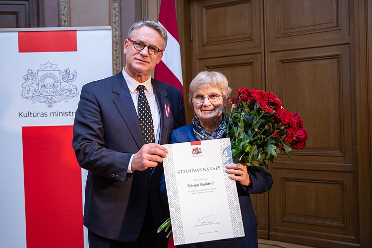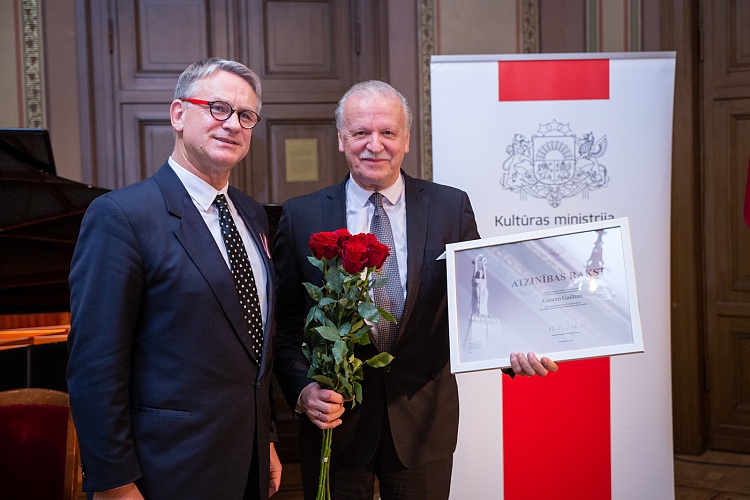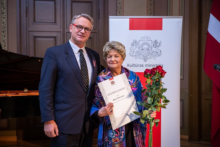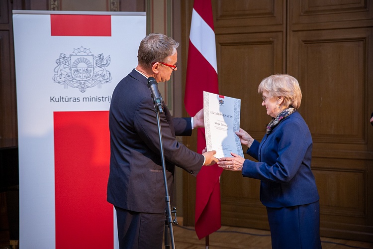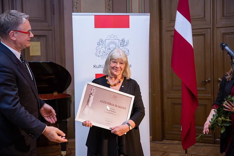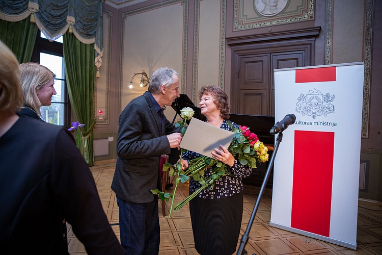 14.11. kultūras ministrs Nauris Puntulis svinīgā ceremonijā LNOB Beletāžas zālē pasniedza Kultūras ministrija un Ministru kabineta Atzinības rakstus 16 lielām personībām un vienai organizācijai par ilggadēju radošo ieguldījumu kultūrā.