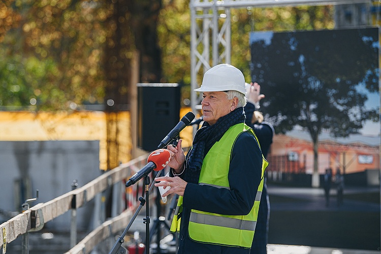 16. oktobrī, klātesot Liepājas pilsētas domes vadībai, kultūras ministram, būvniekiem un projekta autoriem, svinīgā noskaņojumā iemūrēts koncertdārza “Pūt, vējiņi!” pamatakmens.