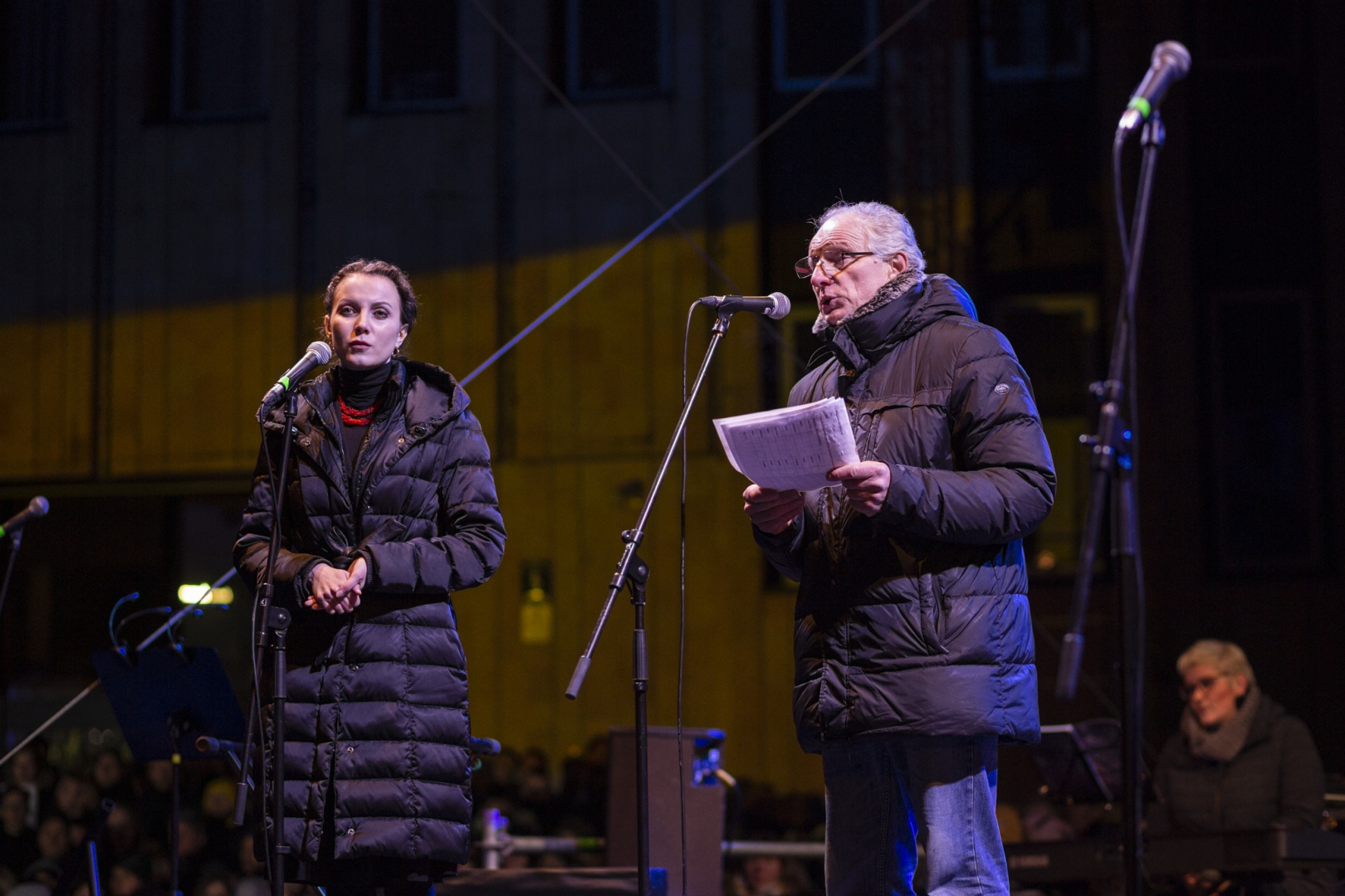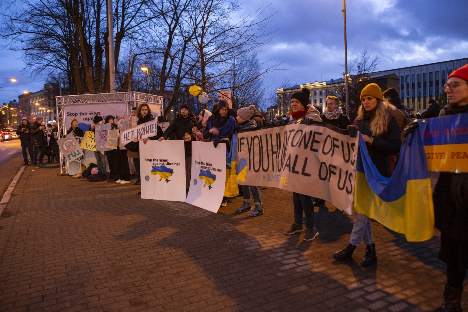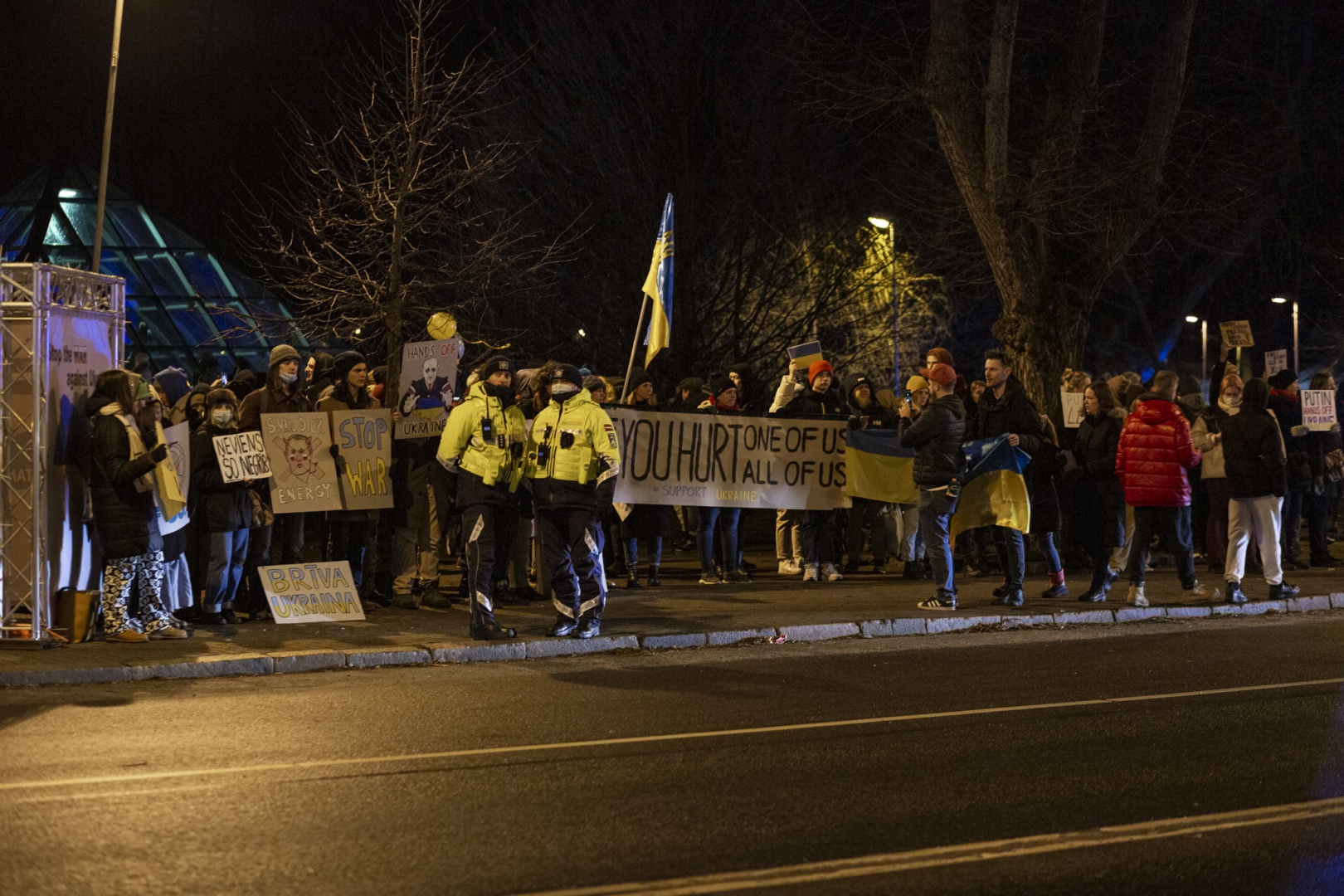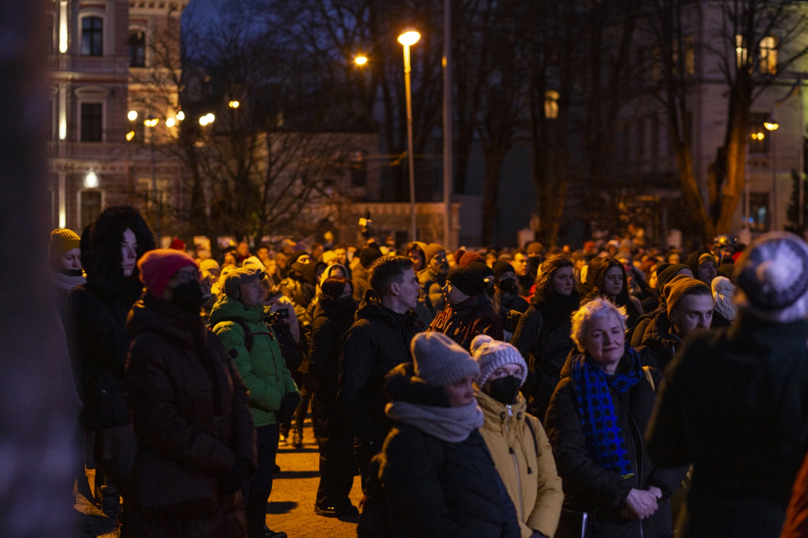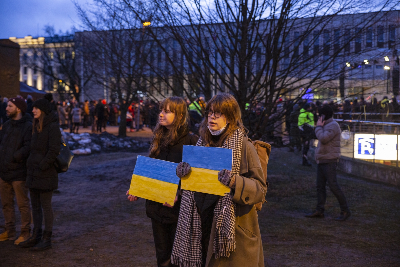 Piektdien 25. februārī no plkst.18:00 laukumā pie Rīgas Kongresu nama Latvijas mūziķi un Latvijas Dziesmu un deju svētku kustības dalībnieki - kori, pūtēju orķestri, tautas deju kolektīvi un folkloras kopas - veltīja savus priekšnesumus Ukrainas atbalstam, vienojoties koncertā “Ukrainas brīvībai”.