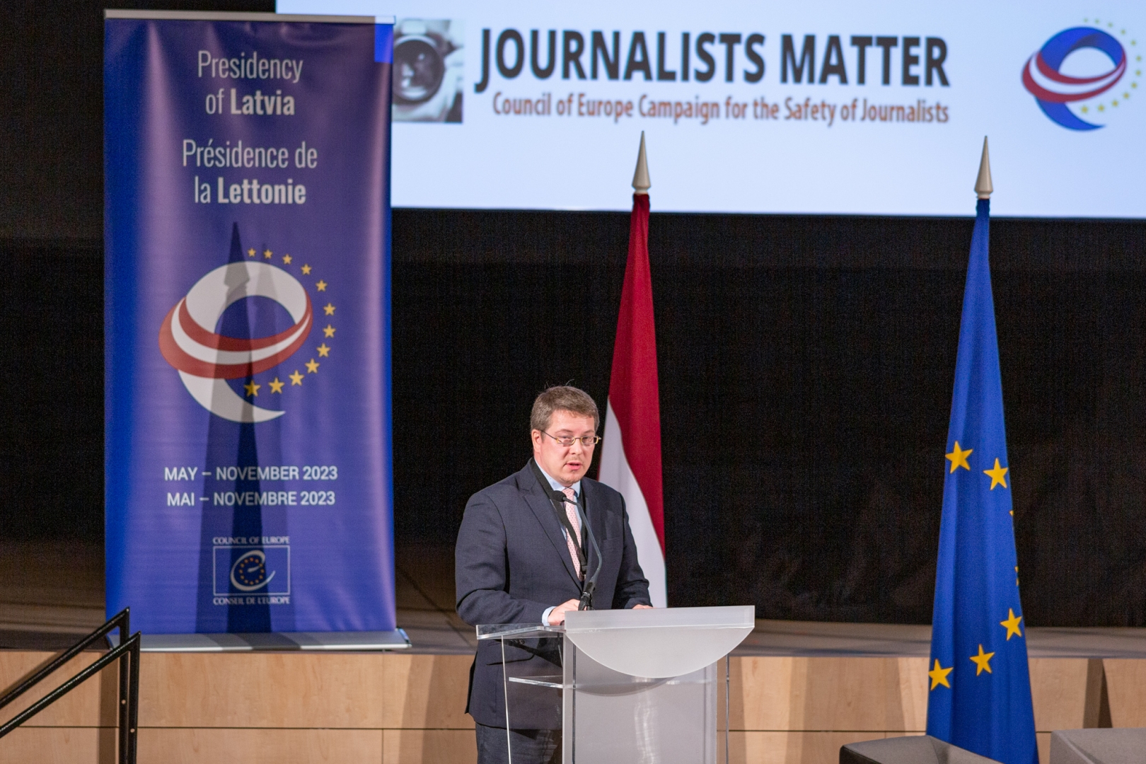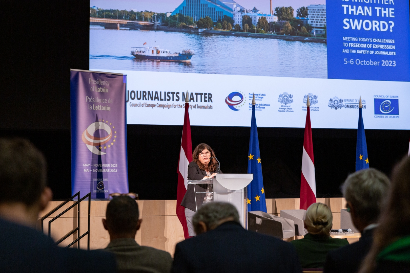 2023. gada 5. un 6. oktobrī Ārlietu ministrija, Kultūras ministrija, Tiesībsarga birojs un Eiropas Padome Latvijas prezidentūrā Eiropas Padomes Ministru komitejā ietvaros organizē starptautisku konferenci par vārda brīvību un žurnālistu drošību “Spalva varenāka par zobenu? Risinot mūsdienu izaicinājumus vārda brīvības un žurnālistu drošības jomā”. Konferences mērķis sasaucas ar Latvijas prezidentūras prioritāti – stiprināt vārda brīvību un žurnālistu drošību.