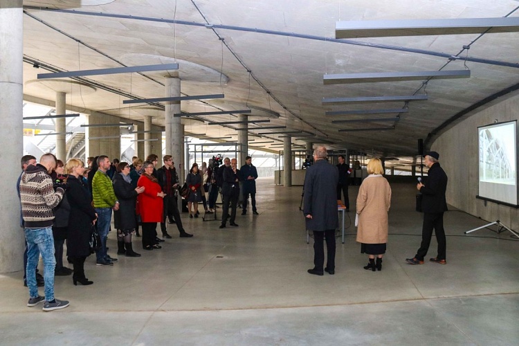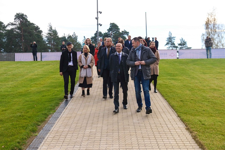 Kultūras ministre Dace Melbārde, Rīgas vicemērs Andris Ameriks, Īpašuma departamenta vadītājs Oļegs Burovs, kā arī Latvijas Nacionālā kultūras centra pārstāves Signe Pujāte un Eva Juhņēviča, būvnieki un citi ar projektu saistīto institūciju pārstāvji, iepazinās ar jau uzsāktajiem un plānotajiem pārbūves darbiem, kuri turpināsies līdz 2020.gada 18.jūnijam jeb XII Latvijas Skolu jaunatnes dziesmu un deju svētkiem. Pasākumā Dace Melbārde uzsvēra, ka Mežaparka Lielajai estrādei ir ļoti īpaša nozīme, jo kopš 1955.gada šī ir Dziesmu svētku mājvieta. Tāpat pirms 30 gadiem te notika tautas manifestācija, kas bija būtisks priekšnosacījums Latvijas valsts atdzimšanai. Ikkatram no mums šī vieta ir saistīta ar saviem atmiņu stāstiem un tie paliks ar mums. Taču ir pienācis laiks spert soli uz priekšu un veidot celtni, kas atbilstu 21.gadsimta drošības prasībām, piedāvātu labākus akustiskos risinājumus un gādātu par svētku dalībnieku ērtībām