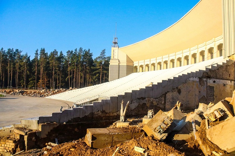 Kultūras ministre Dace Melbārde apmeklē Mežaparka estrādi un iepazīstas ar otrās kārtas pārbūves norises gaitu