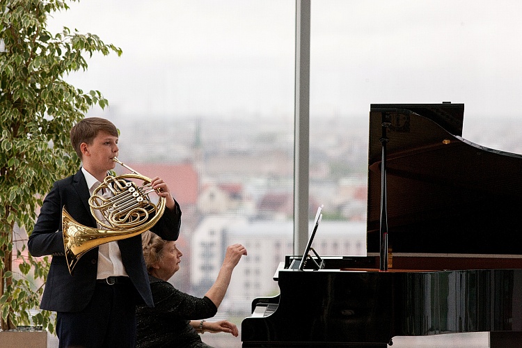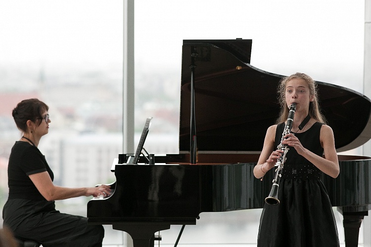 • Atzinības rakstu saņēmējus sveic jaunie mūziķi.
