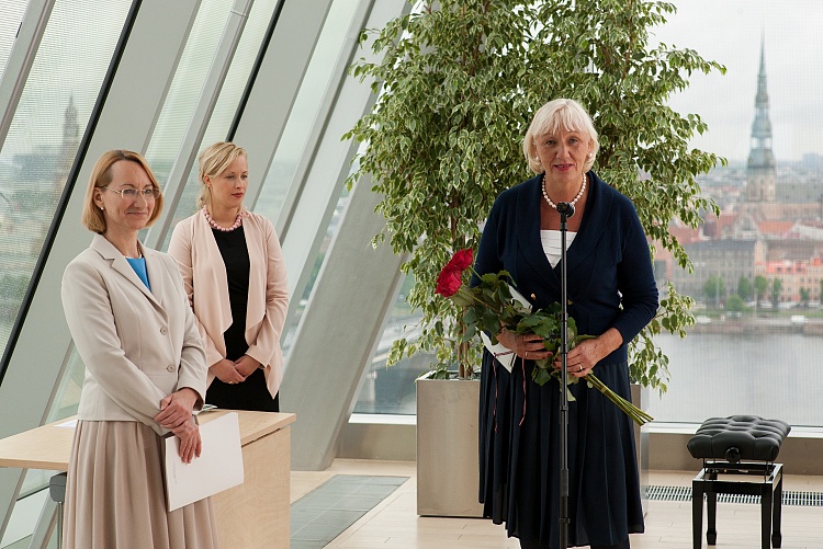 Kultūras ministre Dace Melbārde Gaismas pils korē pasniedz atzinības rakstus kultūras dižgariem