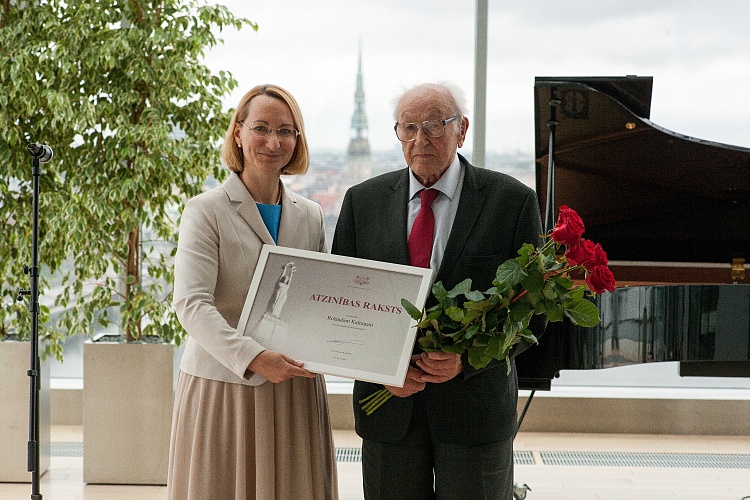 • Ministru kabineta Atzinības rakstu saņēma Rolands Kalniņš, kurš šogad svin savu 95 gadu jubileju. Izcilais režisors radījis tādas tautā mīlētas filmas kā „Ceplis” un „Es visu atceros, Ričard! Jeb Akmens un šķembas”. Viņš ir viens no drosmīgākajiem Latvijas kultūras cilvēkiem, kurš nav atteicies no sava darba arī tad, kad padomju ideoloģiskā cenzūra uz daudziem gadiem nolika plauktā vai pilnībā aizliedza vairākas viņa filmas. Rolands Kalniņš savu pēdējo pilnmetrāžas spēlfilmu „Rūgtais vīns” uzņēma pirms desmit gadiem, 85 gadu vecumā. Viņš joprojām ir aktīvs kultūras dzīves dalībnieks un regulārs kino apmeklētājs.