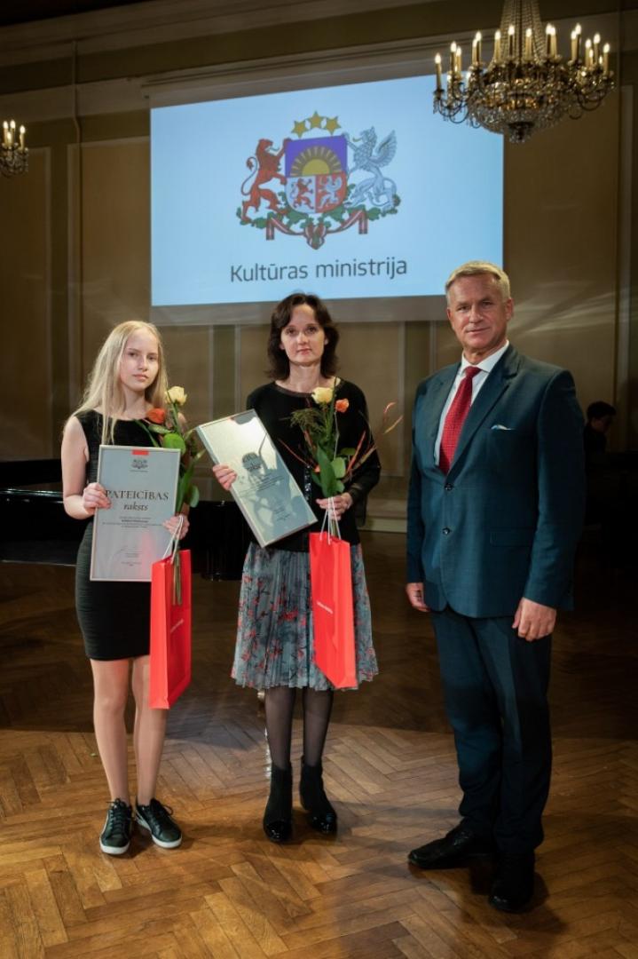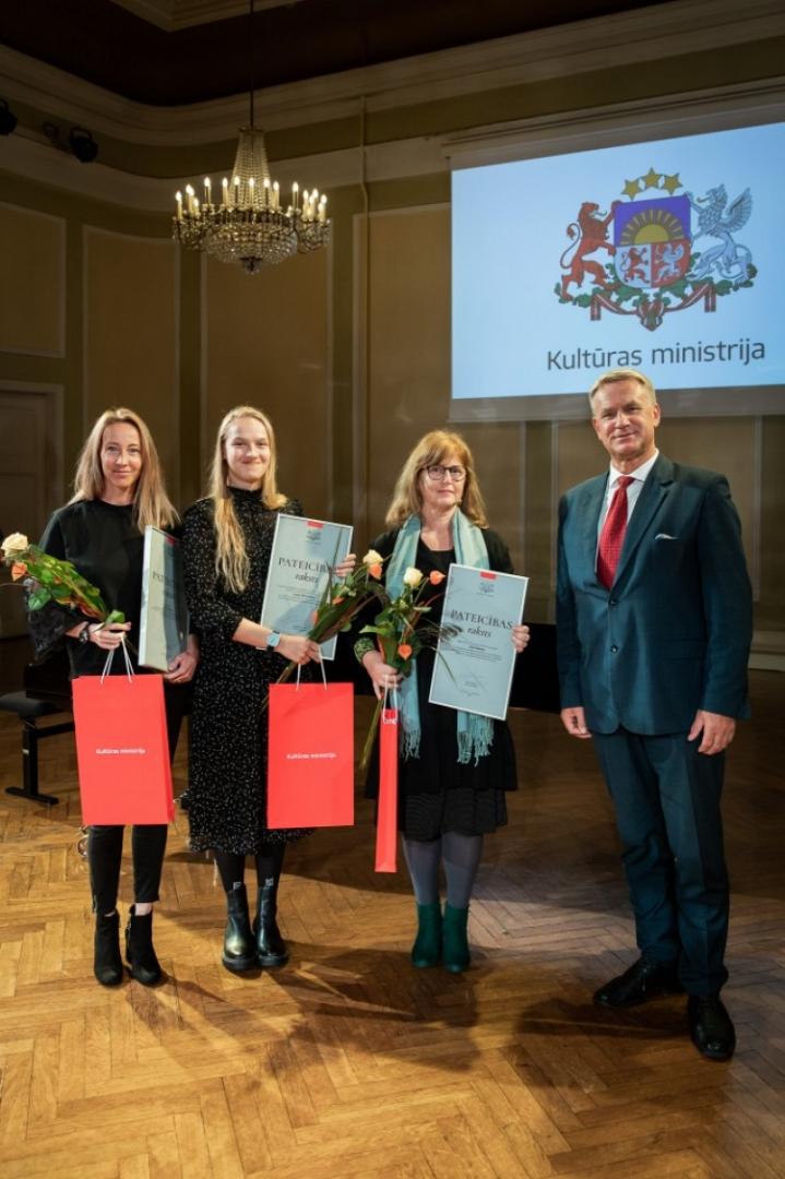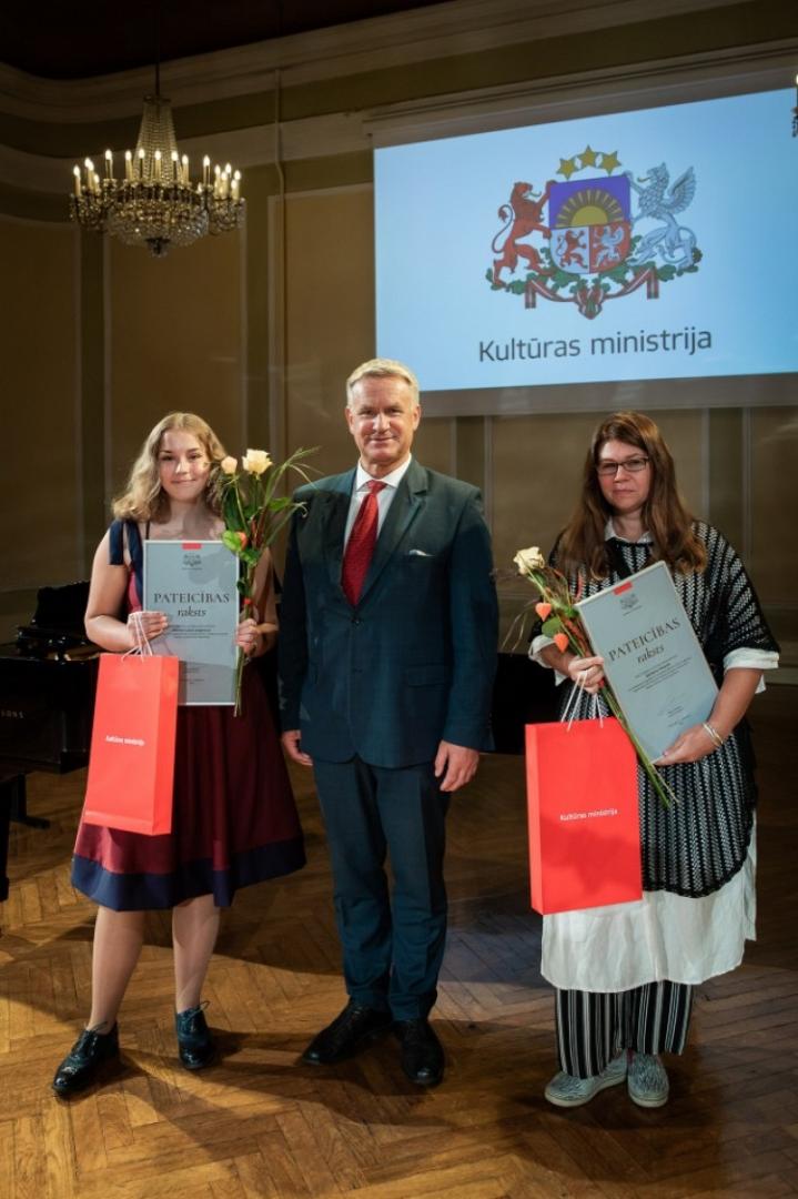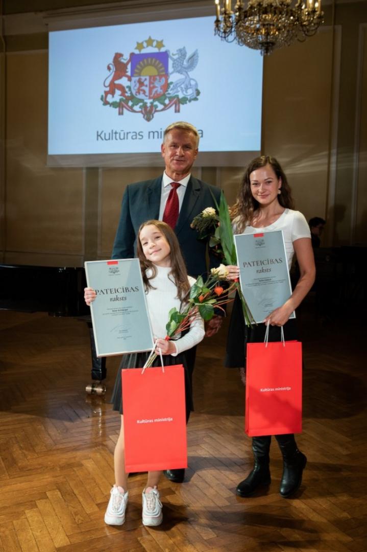 - Esam gandarīti par skaisti aizvadītu, nozīmīgu notikumu kultūrizglītības nozarē! Šodien Jāzepa Vītola Latvijas Mūzikas akadēmijā godinājām "Cimzes balvas 2020" ieguvējus - NMV Emīla Dārziņa mūzikas skola vijoļspēles skolotāju Romanu Šnē un Saldus Mākslas skolas ilggadēju direktori, skolotāju Vēsmu Krūmiņu. Kultūras ministrs Nauris Puntulis pasniedza Latvijas Republikas Kultūras ministrijas apbalvojumus 46 pērn starptautiskus panākumus guvušiem kultūrizglītības jomas skolēniem, kā arī viņu pedagogiem dejas, mākslas un mūzikas nozarē. Sveicam visus laureātus un vēlam ražīgu jauno darba cēlienu!