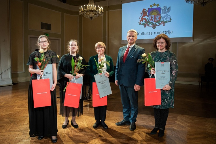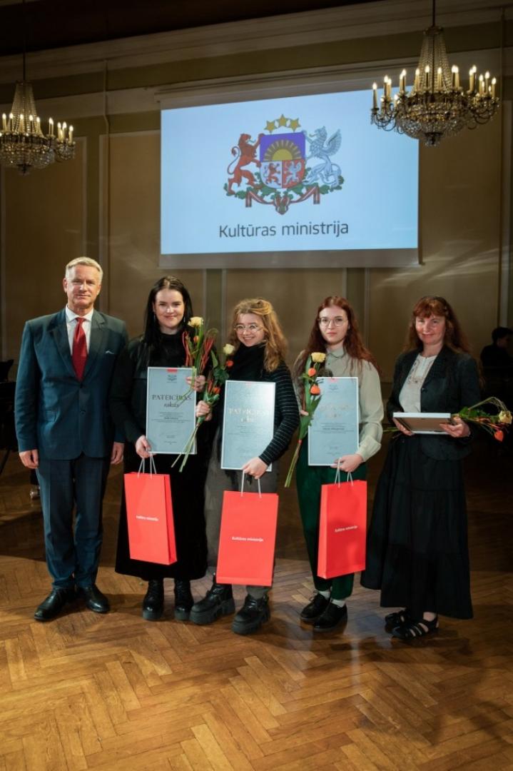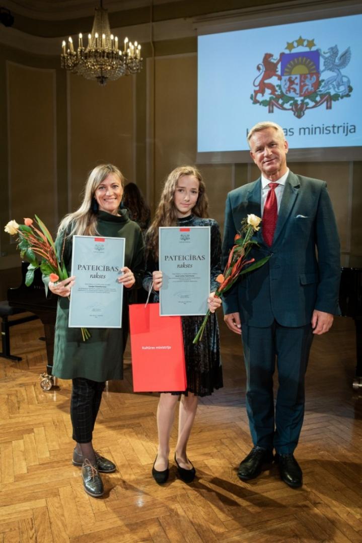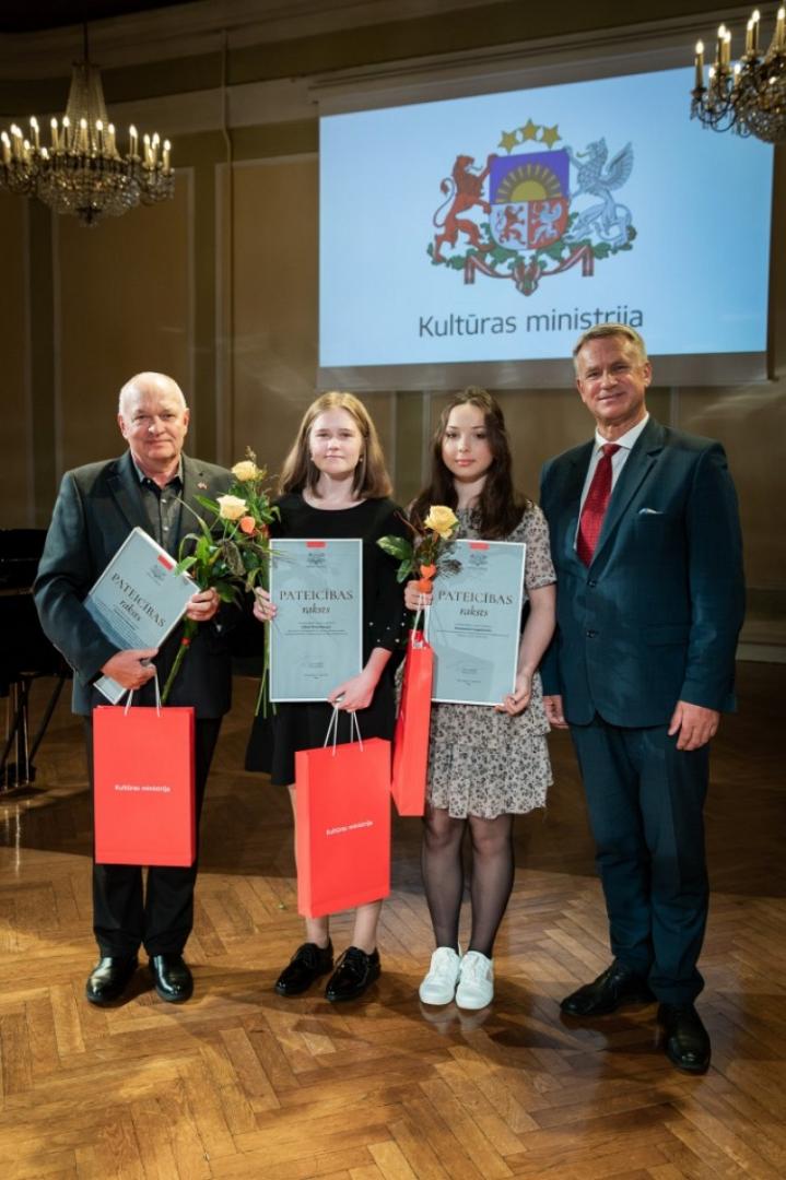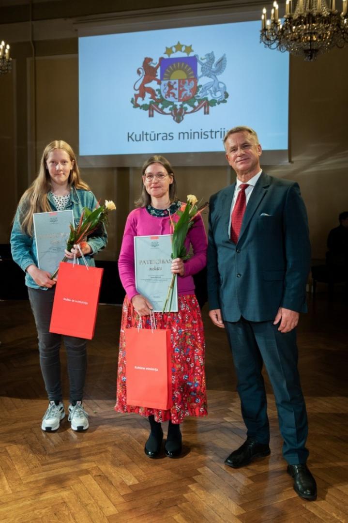 - Esam gandarīti par skaisti aizvadītu, nozīmīgu notikumu kultūrizglītības nozarē! Šodien Jāzepa Vītola Latvijas Mūzikas akadēmijā godinājām "Cimzes balvas 2020" ieguvējus - NMV Emīla Dārziņa mūzikas skola vijoļspēles skolotāju Romanu Šnē un Saldus Mākslas skolas ilggadēju direktori, skolotāju Vēsmu Krūmiņu. Kultūras ministrs Nauris Puntulis pasniedza Latvijas Republikas Kultūras ministrijas apbalvojumus 46 pērn starptautiskus panākumus guvušiem kultūrizglītības jomas skolēniem, kā arī viņu pedagogiem dejas, mākslas un mūzikas nozarē. Sveicam visus laureātus un vēlam ražīgu jauno darba cēlienu!