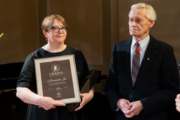 - Latvijas Nacionālā kultūras centra direktore Signe Pujāte un Cimzes balvas 2020 ieguvējs - PIKC “Nacionālā Mākslu vidusskola” Emīla Dārziņa mūzikas skolas ilggadējs vijolspēles skolotājs Romans Šnē.