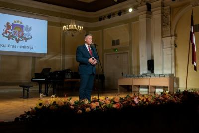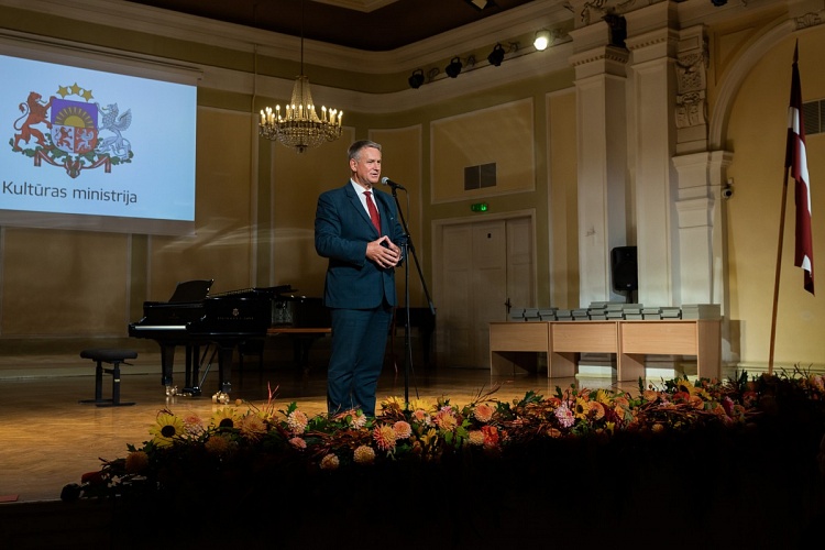- Kultūras ministrs Nauris Puntulis piedalās apbalvojumu pasniegšanas ceremonijā.