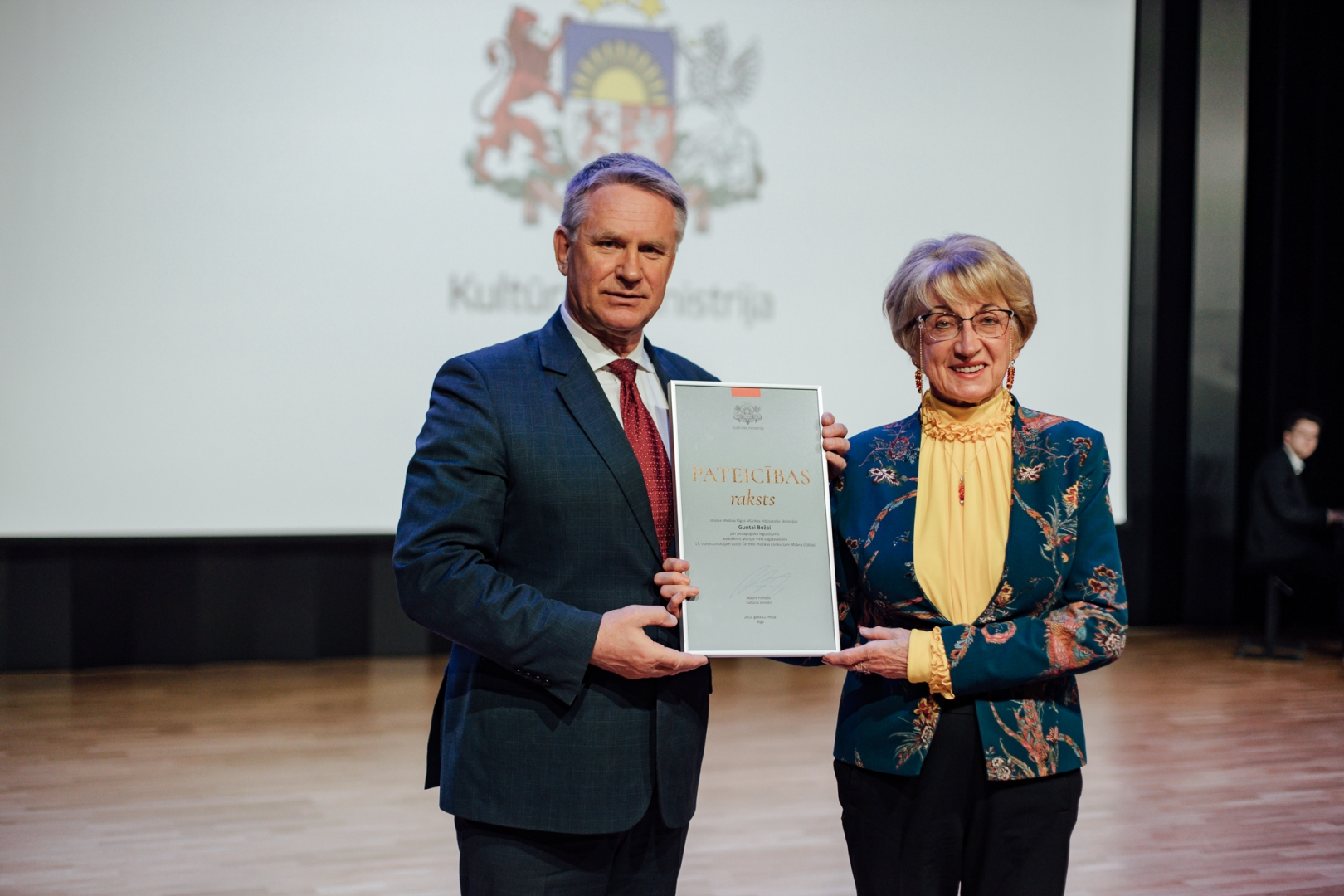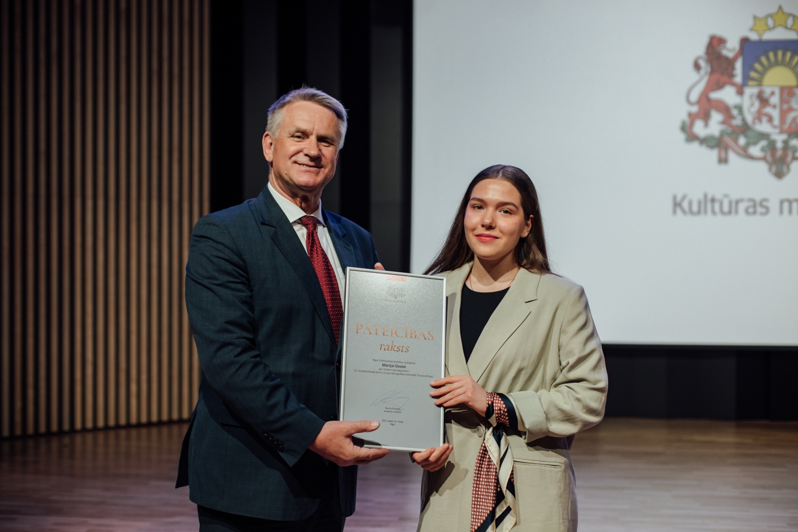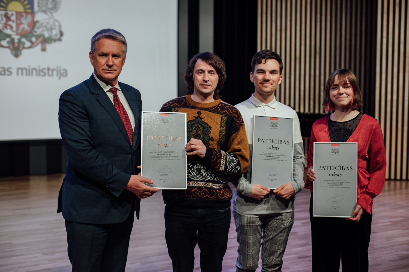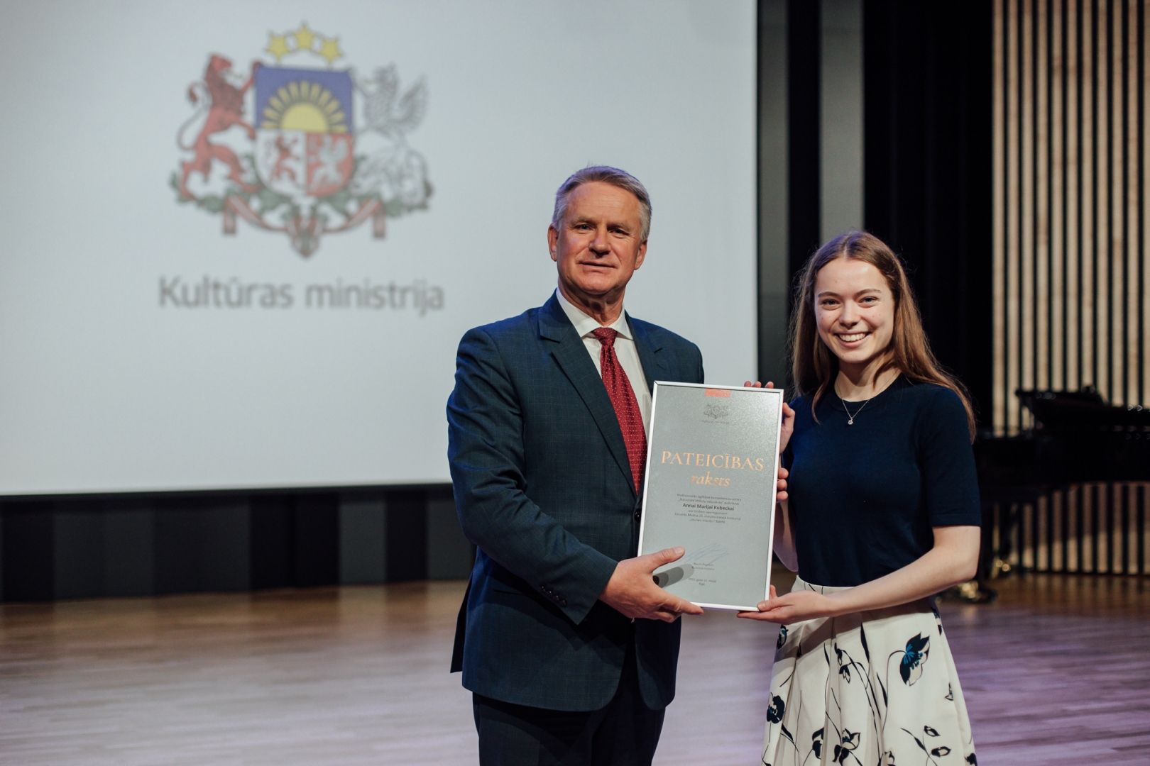 2022. gada 12. maijā plkst.12.00 PIKC “Nacionālā Mākslu vidusskola” Emīla Dārziņa koncertzālē apbalvojumus saņēma talantīgākie kultūrizglītības nozares audzēkņi, viņu skolotāji un koncertmeistari. Kultūras ministrijas apbalvojumu piešķir par nozīmīgiem sasniegumiem starptautiskos konkursos, izstādēs un skatēs mākslu nozarēs. Vienlaikus ar Kultūras ministrijas balvu pasniegta arī Latvijas Nacionālā kultūras centra iedibinātā Cimzes balva.