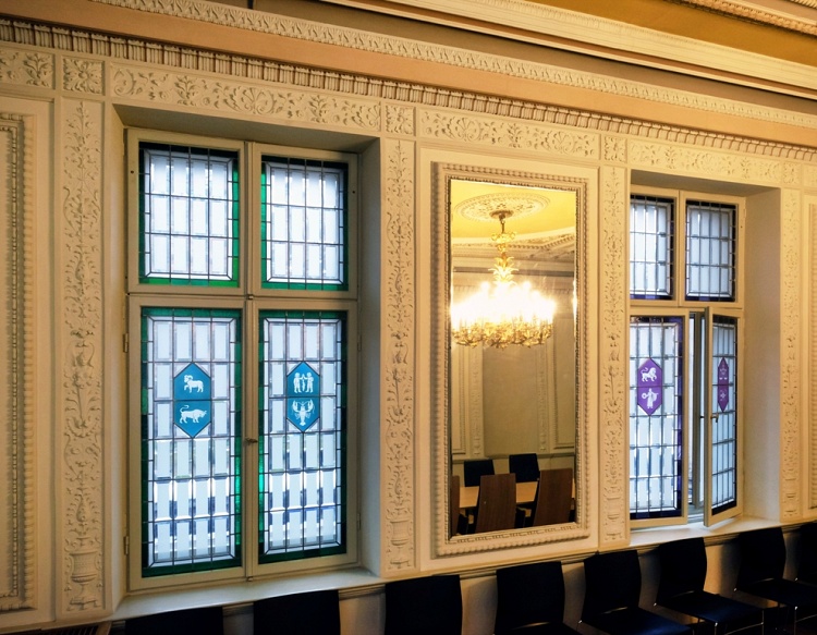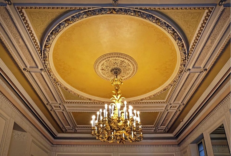 - Ēkā saglabājušās vairākas zāles ar bagātu dekoratīvo apdari, kas pēdējo gadu laikā restaurētas. Foto: Andris Tone