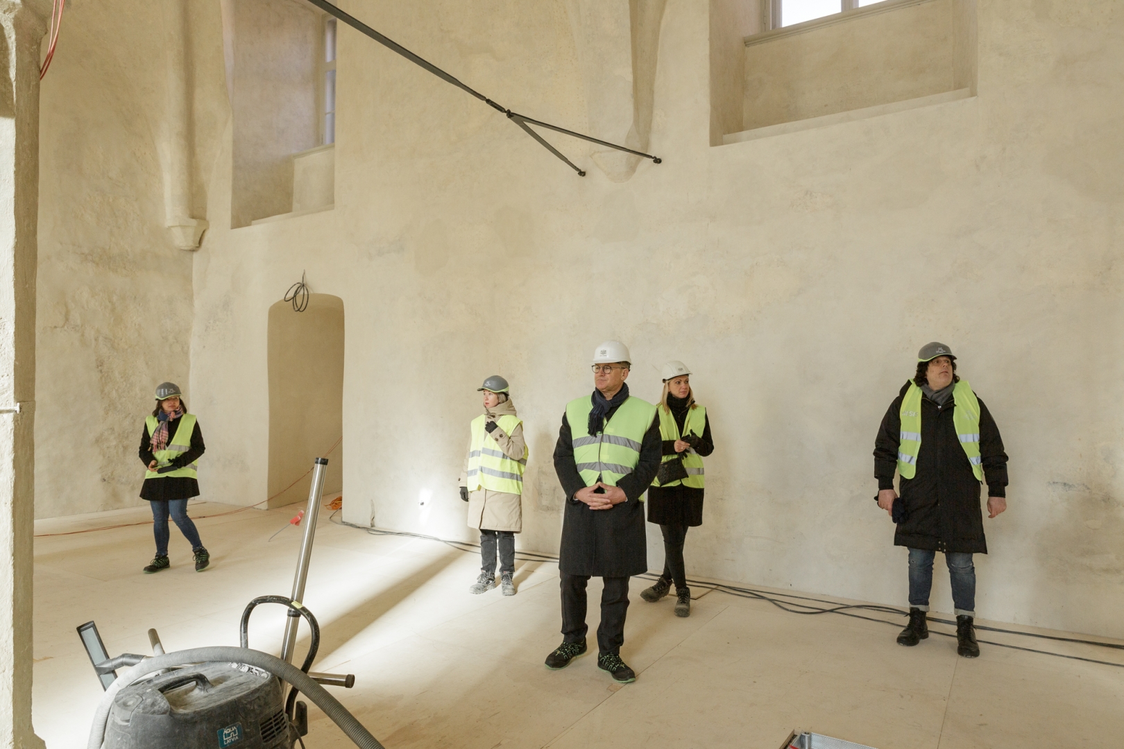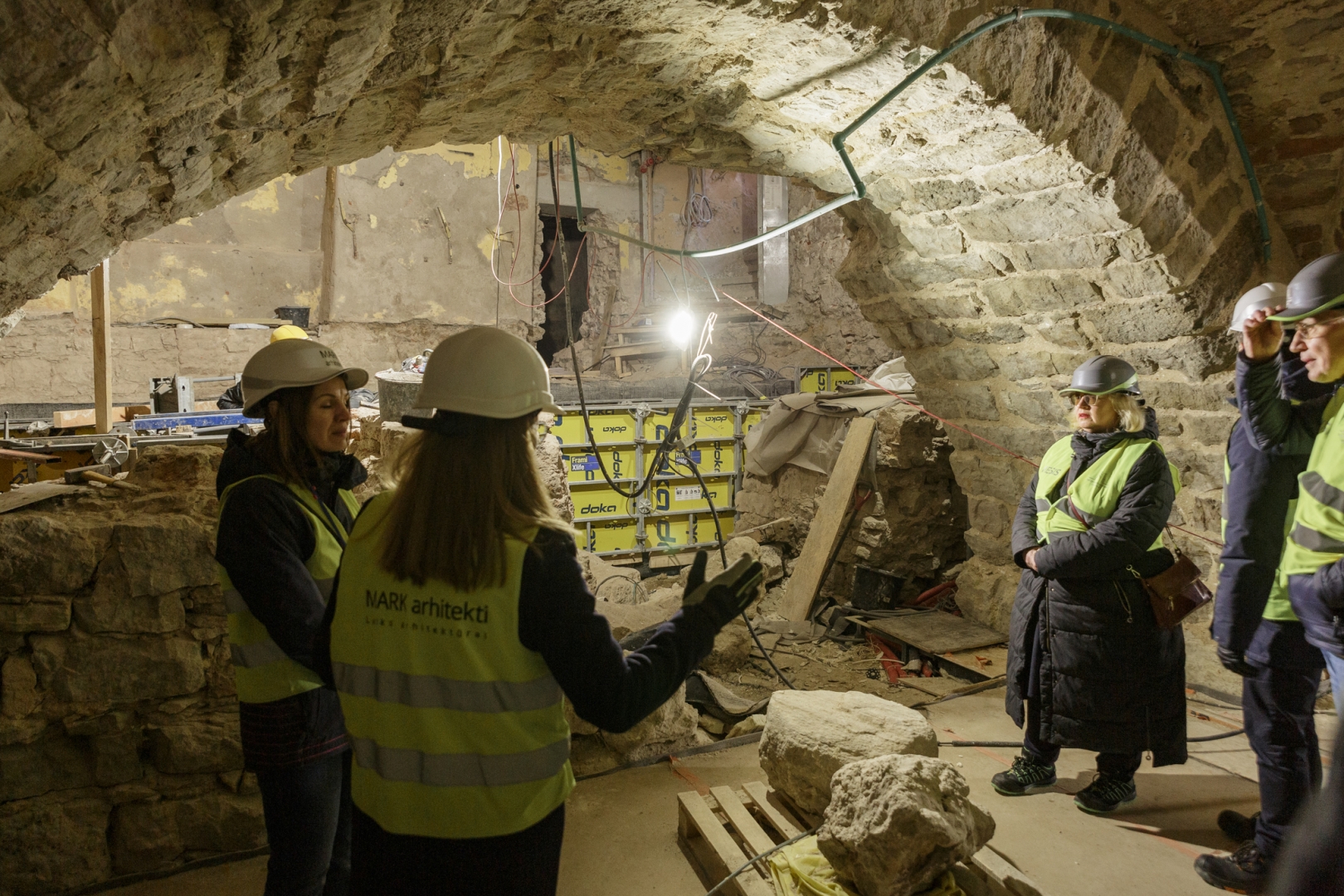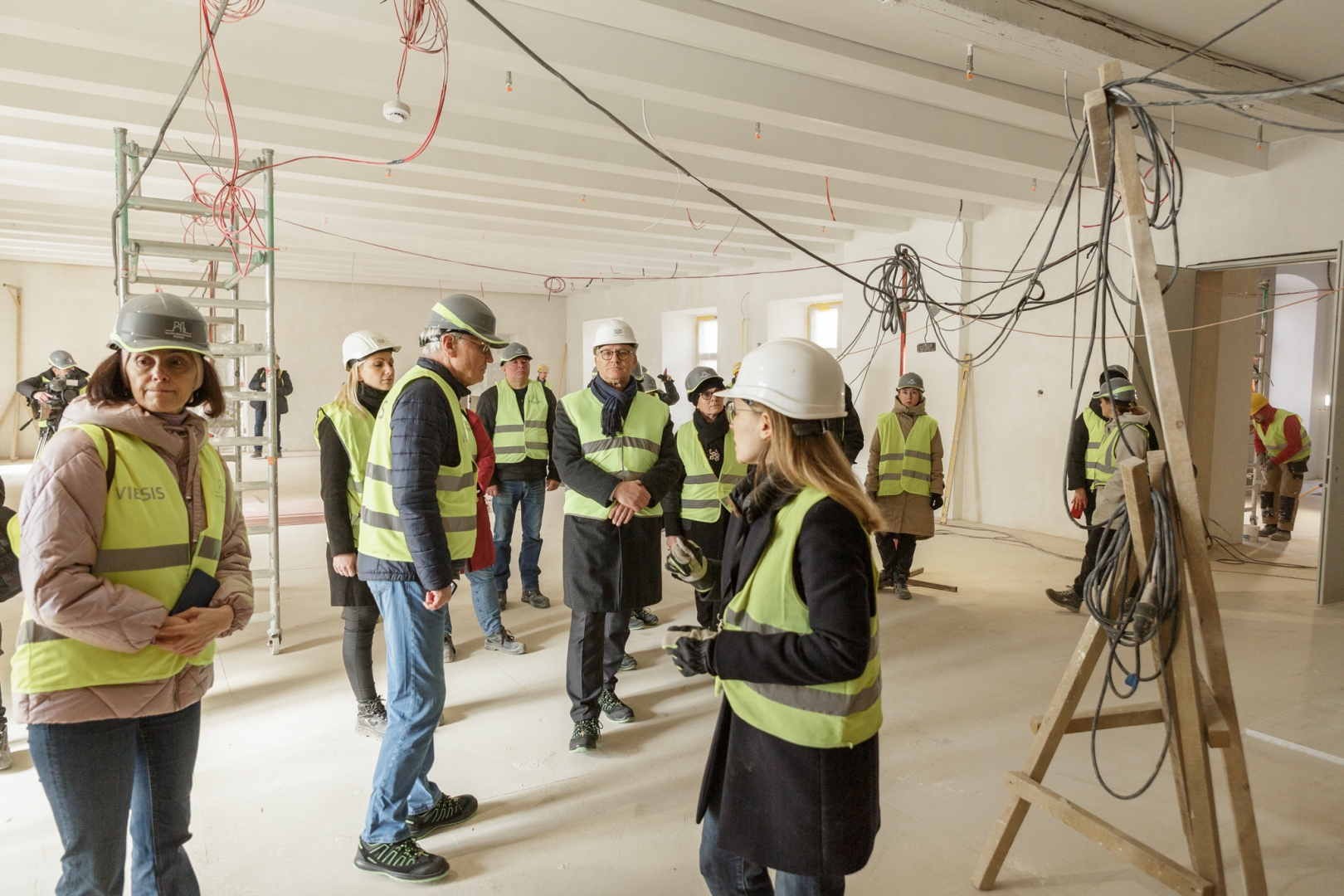 Kultūras ministrs Nauris Puntulis piedalās Rīgas pils pārbūves darbu Kastelas daļas apmeklējumā