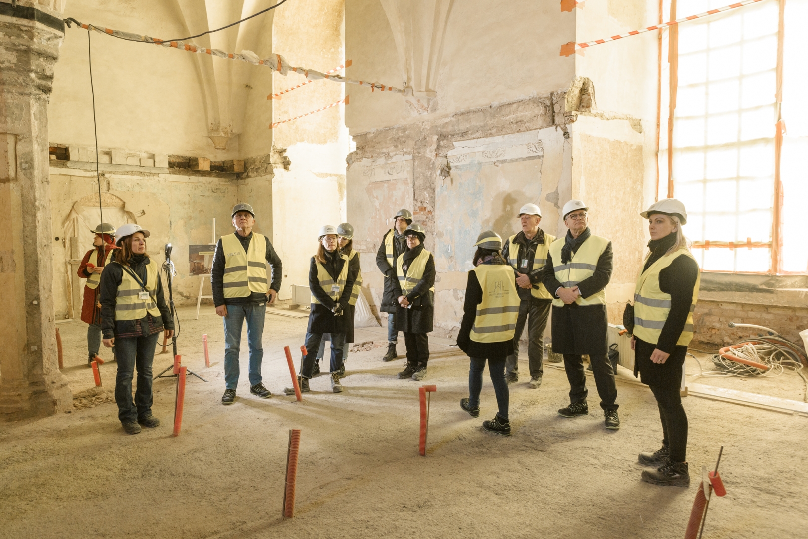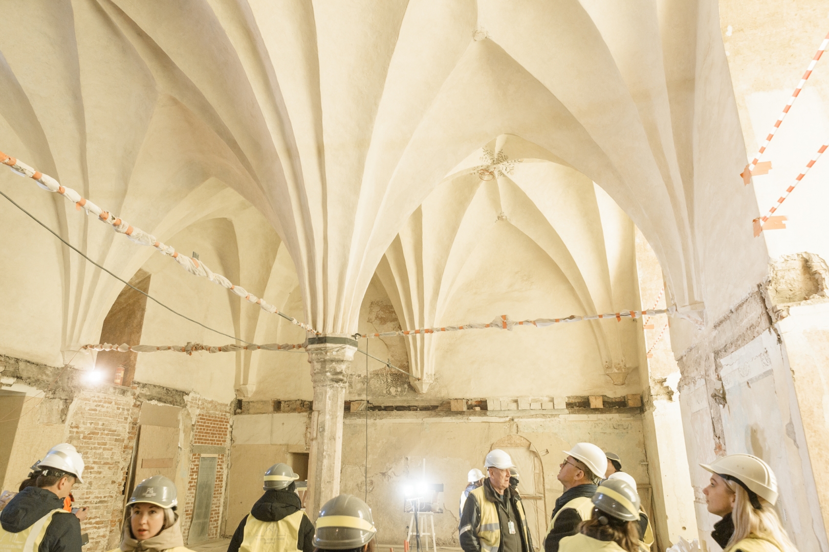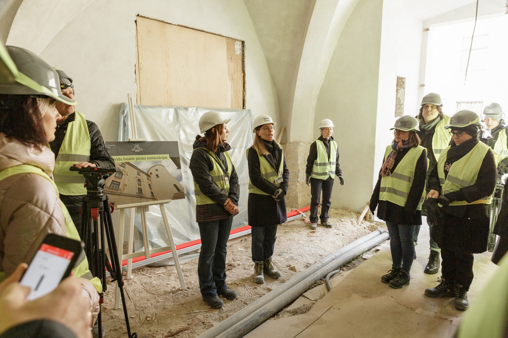 Kultūras ministrs Nauris Puntulis piedalās Rīgas pils pārbūves darbu Kastelas daļas apmeklējumā