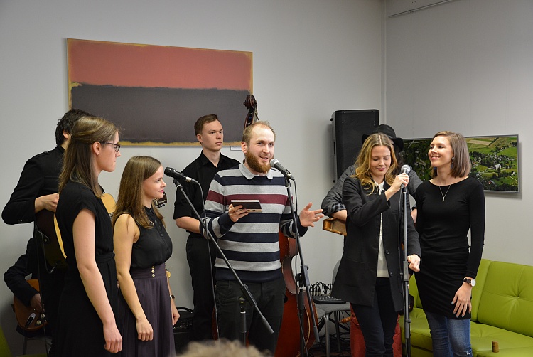 - KM Latvijas valsts simtgades biroja reģionālo projektu vadītāja Jolanta Borīte latgaliešu dziesmu izlases "Celīs, bruoļ!" albuma prezentācijā Latgales pārstāvniecībā.