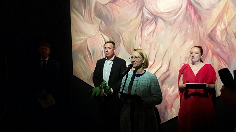 - Kultūras ministre Dace Melbārde, mākslinieks Miķelis Fišers un kuratore Inga Šteimane.