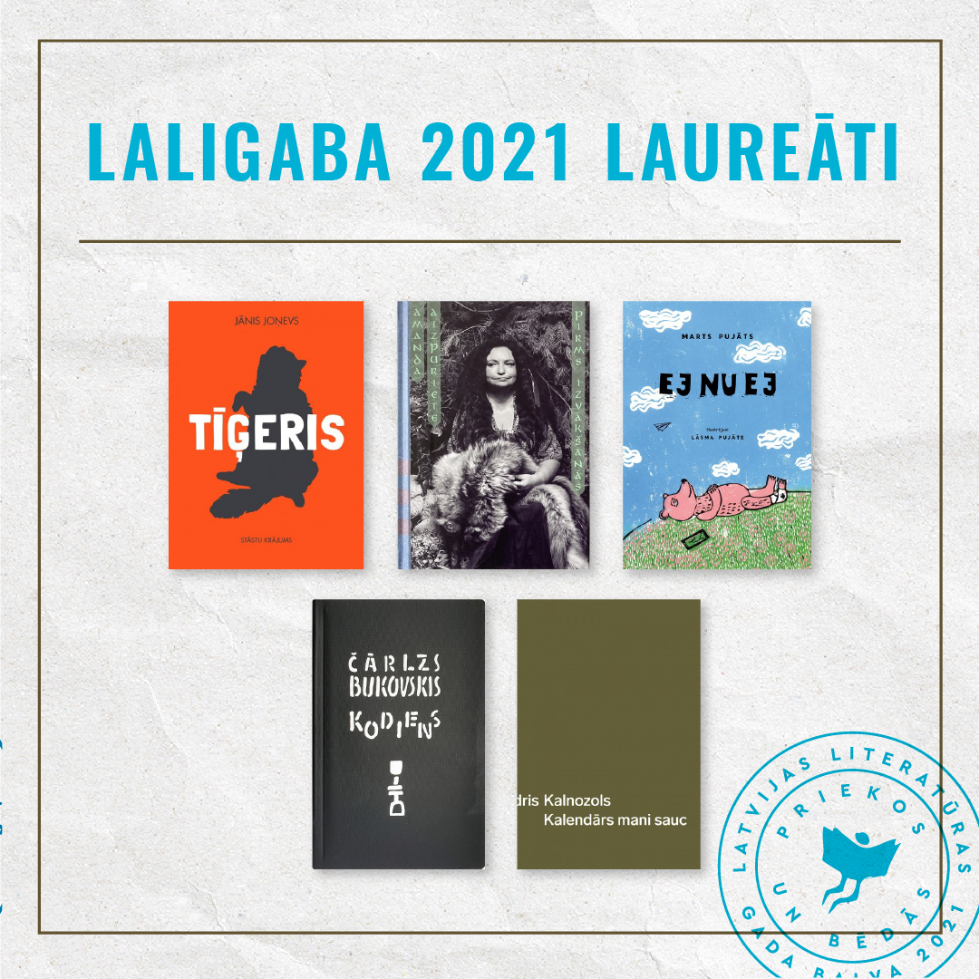 Piektdien, 2021. gada 30. aprīlī, Latvijas Literatūras gada balvas (LALIGABA) balvu pasniegšanas raidījumā LTV1 kanālā tika atklāti un apbalvoti Latvijas Literatūras gada balvas 2021 laureāti piecās kategorijās, sveikti speciālbalvas ieguvēji – festivāla “Prozas lasījumi 2020” komanda rakstnieces Ingas Žoludes vadībā, kā arī godināti Latvijas Literatūras gada balvas Mūža balvas laureāti – valodniece un rakstniece Lalita Muižniece un literatūrzinātnieks Gunārs Bībers.