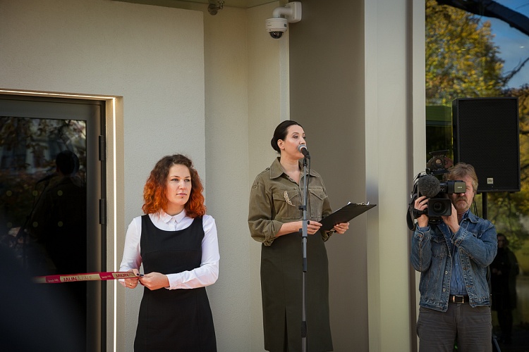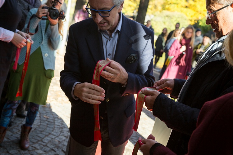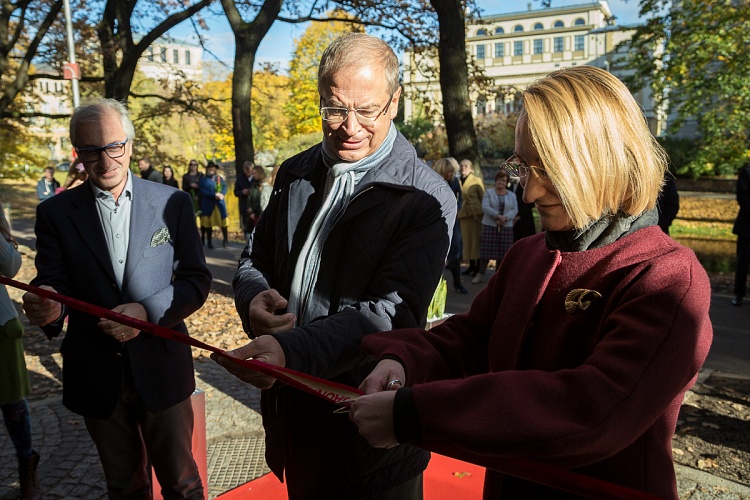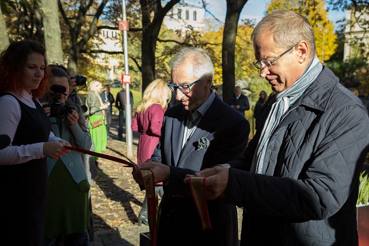 - Atklāšanas lenti svinīgi pārgriež kultūras ministre Dace Melbārde, Rīgas vicemērs Andris Ameriks un Latvijas Nacionālā teātra direktors Ojārs Rubenis.