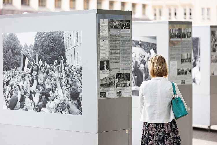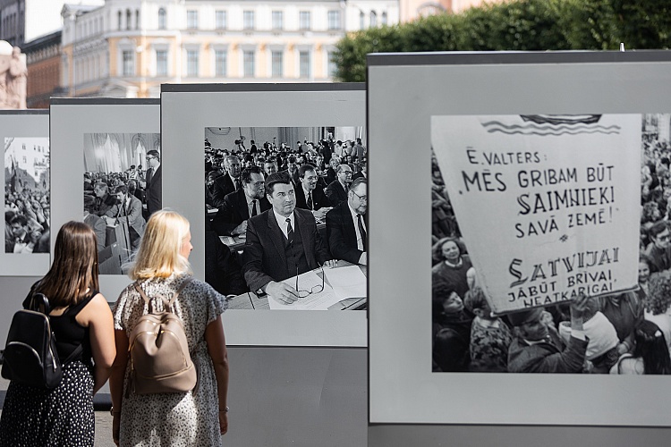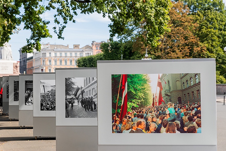 Latvijas neatkarības atjaunošanas trīsdesmitgadei veltīta lielformāta fotoizstāde Brīvības laukumā