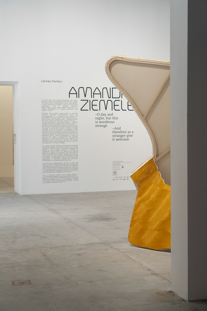 Šonedēļ tika atklāts Latvijas paviljons Venēcijas biennāles 60. starptautiskajā mākslas izstādē. Tā māksliniece Amanda Ziemele ar ekspozīciju “O day and night, but this is wondrous strange... and therefore as a stranger give it welcome*” aicina izstādes apmeklētājus ieņemt atvērtu un pieņemošu nostāju, lai pēc iespējas labāk sajustu viņas izvēlēto glezniecības oriģinālvalodu.