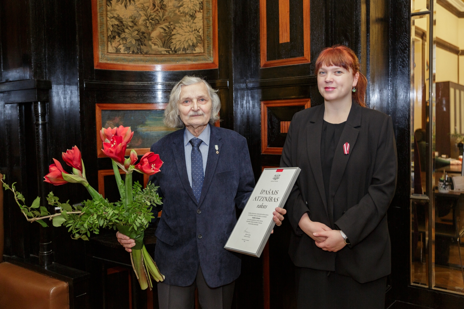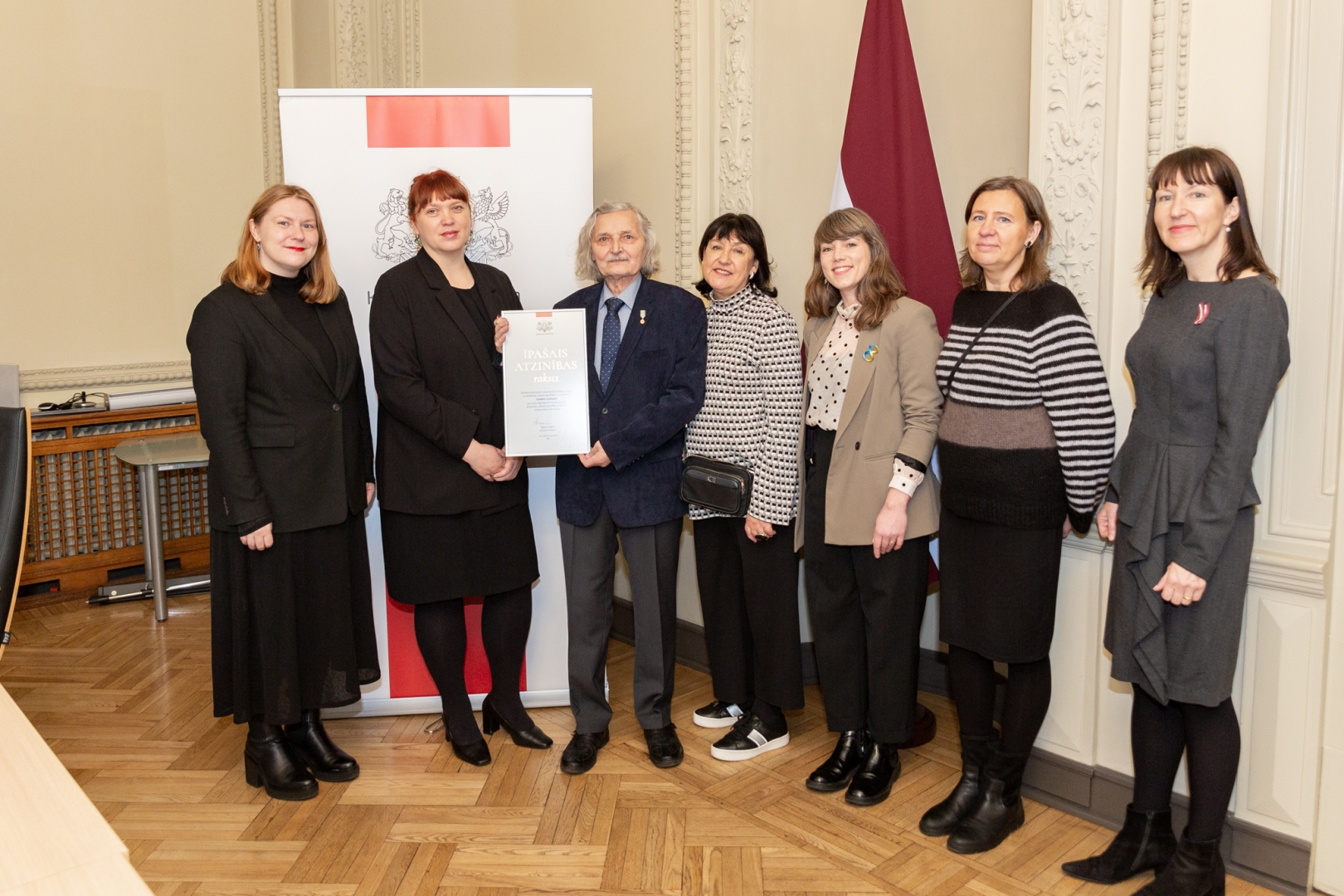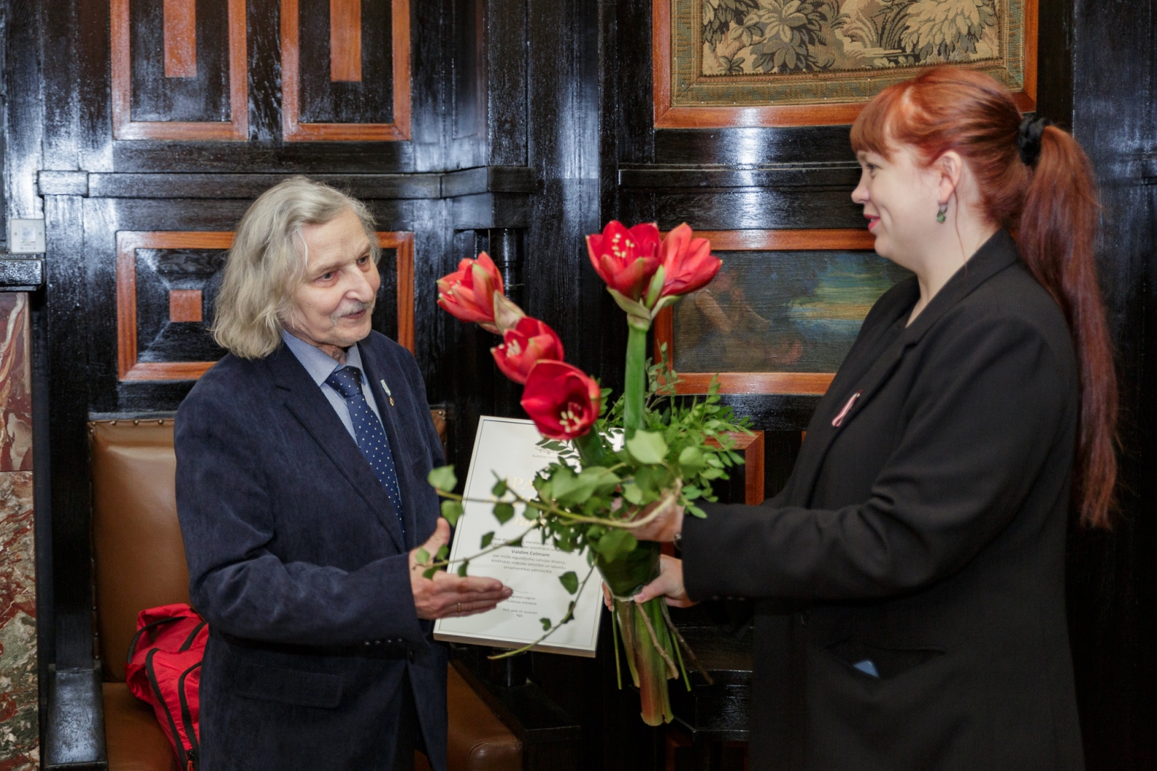 10. novembrī kultūras ministre Agnese Logina pasniedza Ministru kabineta Atzinības rakstu dizainerim un māksliniekam Valdim Celmam.