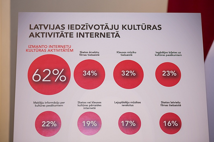 Piektdien, 25.01. Kultūras ministrija (KM), Latvijas Kultūras akadēmija (LKA), Nacionālais Kino centrs (NKC) un Latgales reģiona akustiskā koncertzāle GORS pārstāvji mediju pasākumā informēja par jaunākā kultūras patēriņa un līdzdalības ietekmes pētījuma rezultātiem, atklājot jaunākās tendences kultūras patēriņā Latvijā.