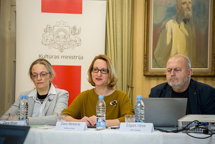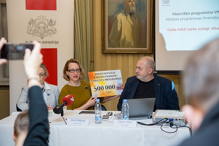 Kultūras ministre Dace Melbārde pasākumā informēja par paveikto, lai veicinātu profesionālās mākslinieciskās un zinātniskās jaunrades attīstību un nostiprināšanu, kā arī Radošo personu statusa un profesionālo radošo organizāciju likumā ietverto. VKKF direktors Edgars Vērpe pastāstīja, kādiem kritērijiem izpildoties un kādus soļus sperot profesionālās radošās personas varēs iegūt atbalstu, savukārt Latvijas Radošo savienību padomes valdes priekšsēdētāja Dace Bluķe par radošo personu apvienojošo organizāciju lomu atbalsta programmas administrēšanā.