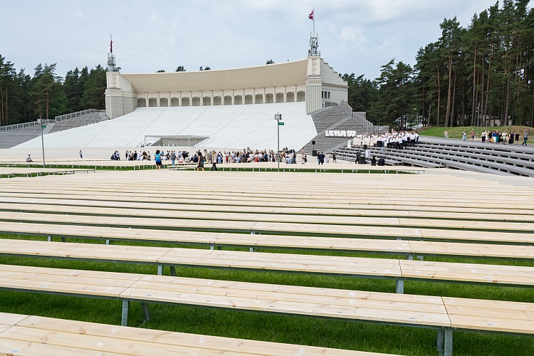 Pēc pārbūves Mežaparka estrādes iežogotā teritorija ir par aptuveni 50 000 kvadrātmetru lielāka nekā tagad, teritorijai sasniedzot 146 430 kvadrātmetrus. Koristu tribīnes uz XXVI Vispārējiem latviešu Dziesmu un XVI Deju svētkiem ar pagaidu koka tribīnēm tika paplašinātas par 2292 koristu vietām, tā kopā nodrošinot vietas gandrīz 10 000 koristiem. Savukārt skatītāju lauka jaunā platība ir 22 197 kvadrātmetri, kuros būs nodrošinātas sēdvietas 30 557 skatītājiem līdzšinējo 23 000 sēdvietu vietā. “Mežaparka estrāde nav vienkāršs objekts, tā ir spēka un tautas rituālu vieta, kurā virmo neiedomājams saliedētības spēks. Tādēļ es esmu ļoti pateicīga būvniekiem par atbildīgo pieeju. Kad ēka ir pabeigta, latvieši tradicionāli aicina draugus un kaimiņus uz sālsmaizes pasākumu. Varam droši teikt, ka neviens sālsmaizes pasākums Latvijā nebūs bijis ar tik lielu viesu skaitu - jau pēc divām nedēļām šeit pulcēsies 16 500 dziedātāji un vairāk nekā 200 dejotāji, savukārt svētkus visos koncertos kopā klātienē varēs izbaudīt 80 000 skatītāju,” svinīgā ceremonijā akcentēja kultūras ministre Dace Melbārde.