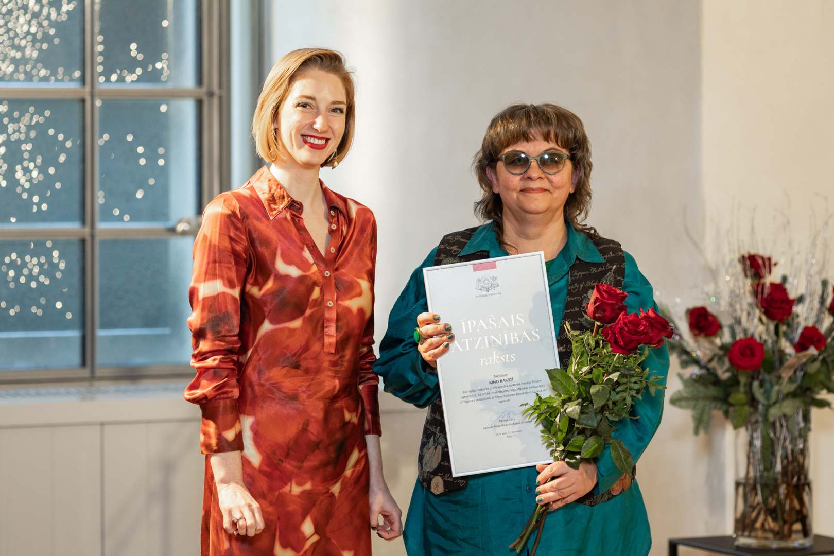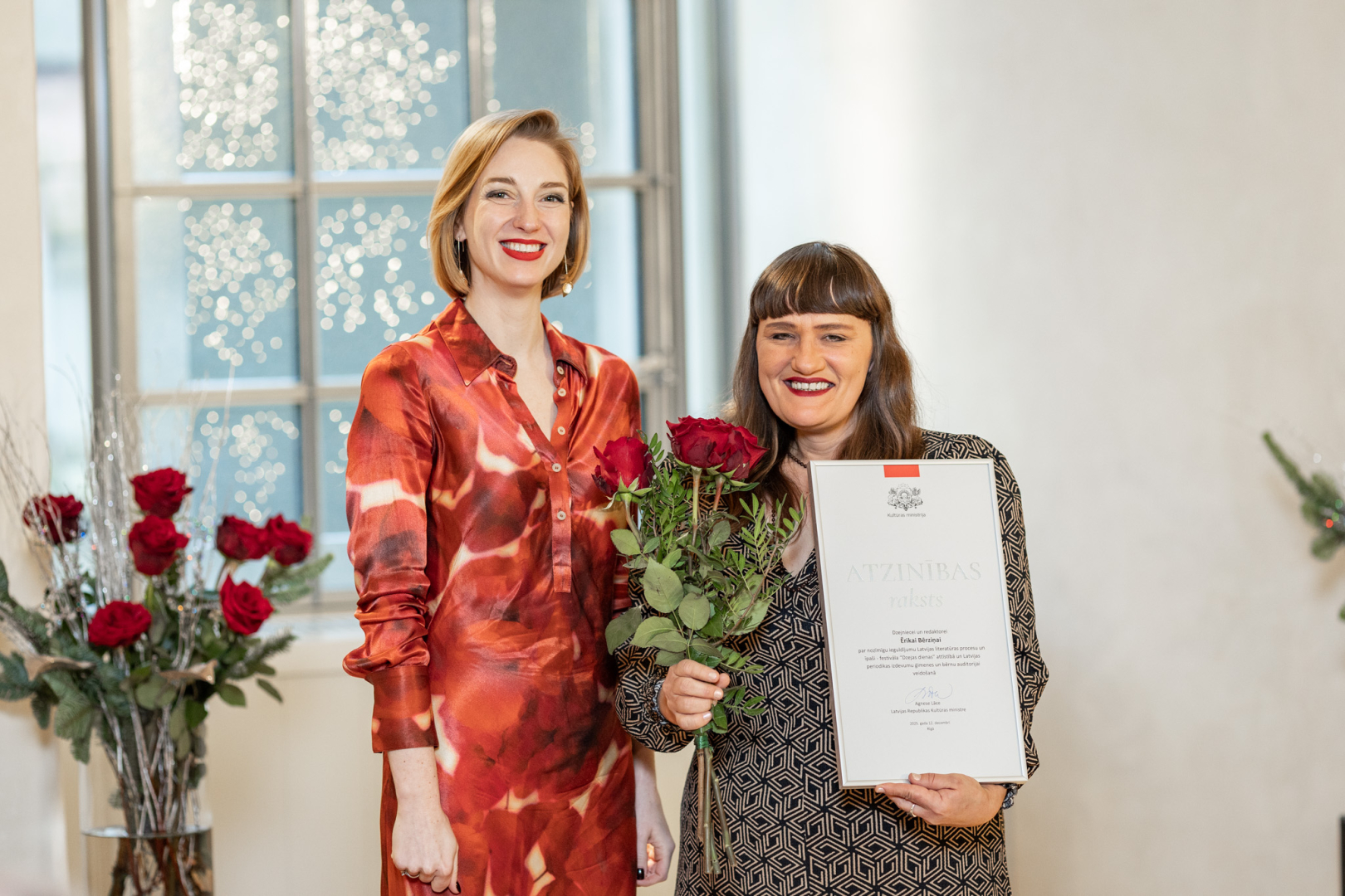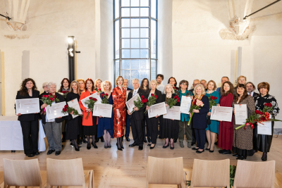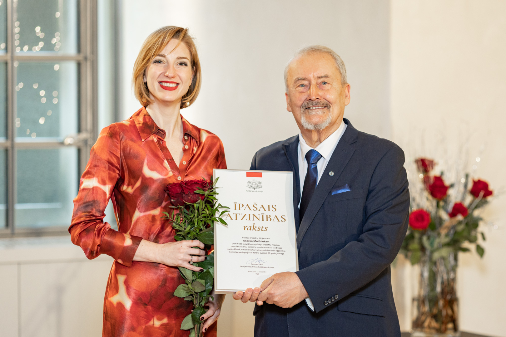 12. decembrī kultūras ministre Agnese Lāce pasniedza Ministru kabineta (MK) Atzinības rakstus un Kultūras ministrijas (KM) Īpašās atzinības, Atzinības un Pateicības rakstus par radošo ieguldījumu un mūža darbu 23 izcilām personībām un organizācijām kultūrā.