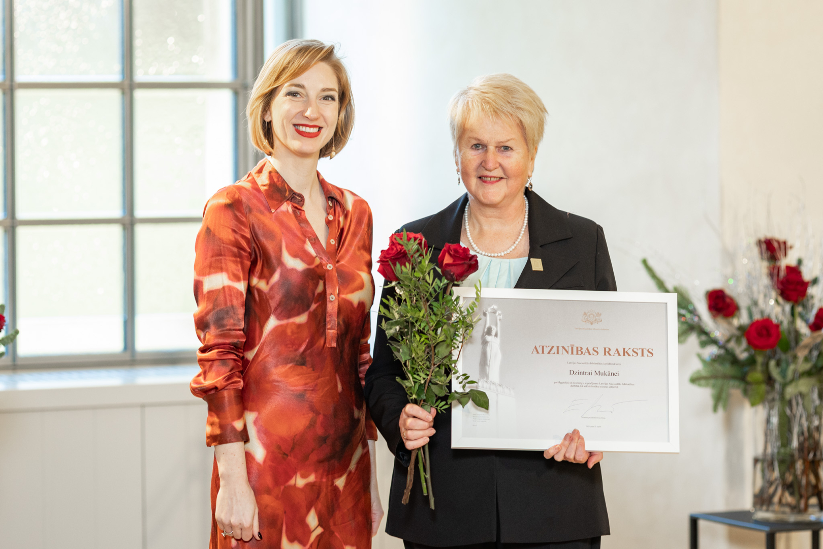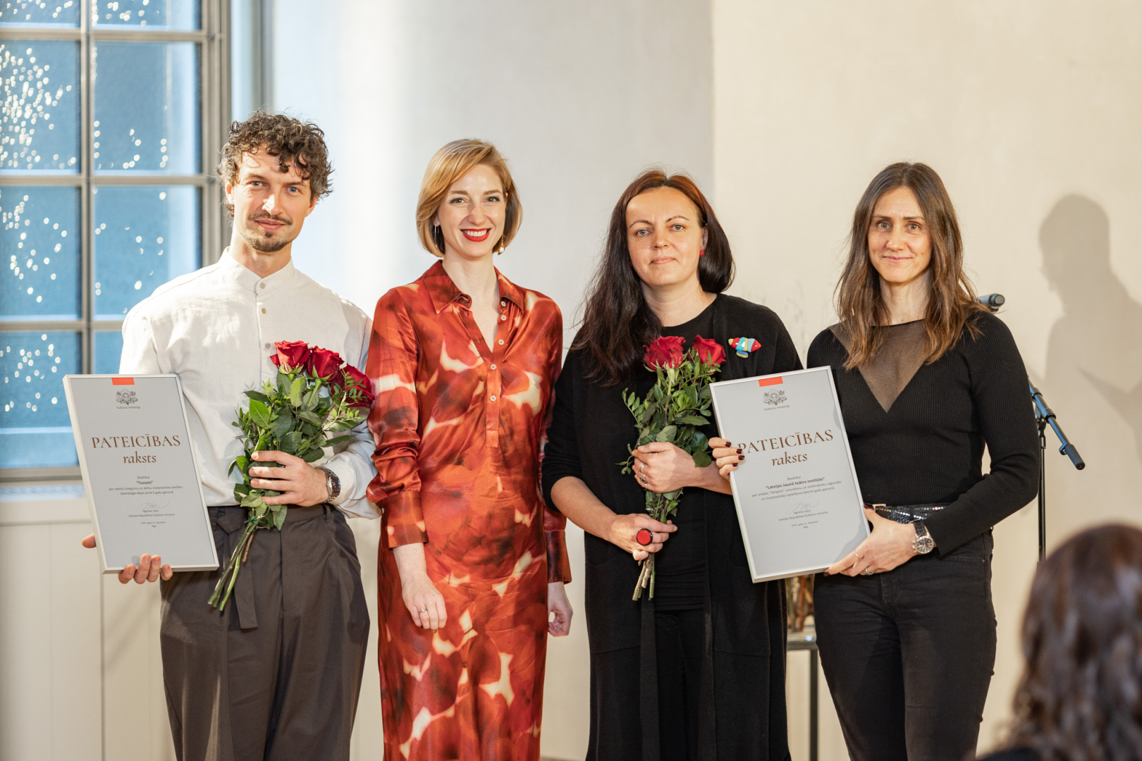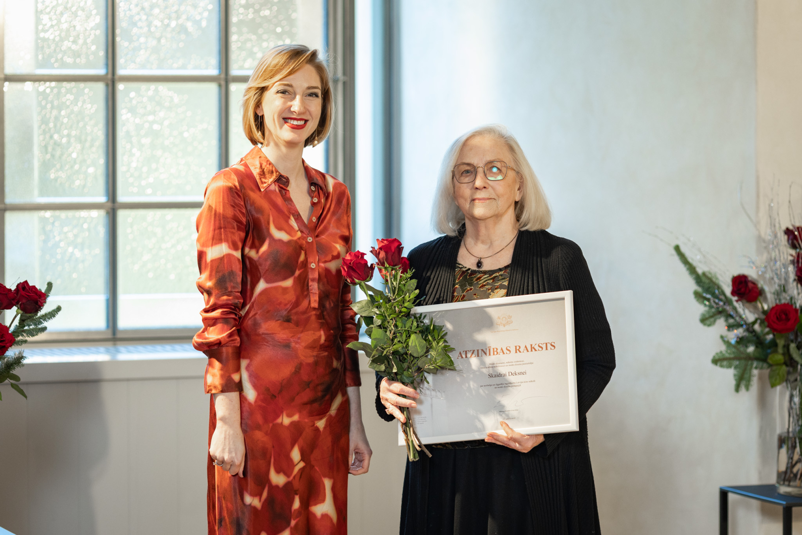 12. decembrī kultūras ministre Agnese Lāce pasniedza Ministru kabineta (MK) Atzinības rakstus un Kultūras ministrijas (KM) Īpašās atzinības, Atzinības un Pateicības rakstus par radošo ieguldījumu un mūža darbu 23 izcilām personībām un organizācijām kultūrā.
