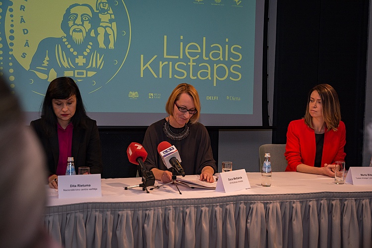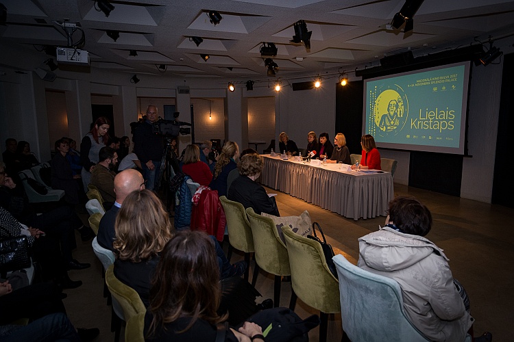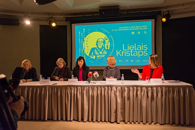 - Preses konferences dalībnieki (no kreisās) - Ilona Bičevska, Lielā Kristapa ekspertu komisijas pārstāve; Ieva Romanova, Latvijas Kinematogrāfistu savienības priekšsēdētāja; Dita Rietuma, Nacionālā kino centra vadītāja; Dace Melbārde, LR Kultūras ministre; Marta Bite, Lielā Kristapa producente.