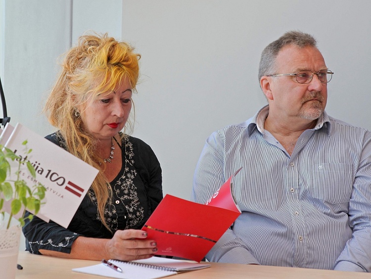 - Kultūras ministre Dace Melbārde un Simtgades projektu konkursa ekspertu komisijas pārstāve, dramaturģe Māra Zālīte preses konferencē.