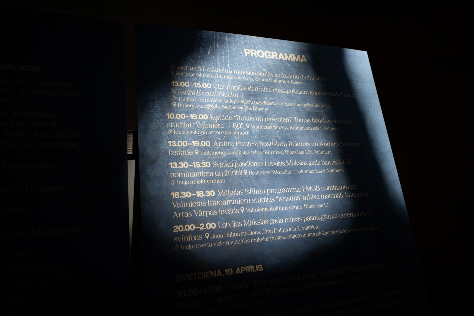 10. aprīlī, Latvijas Nacionālajā mākslas muzejā notika preses konferencē, kurā informēja par Latvijas Mākslas gada balvas 2025. gada žūrijas darbu un gaidāmo LMGB Mākslas nedēļu Valmieras pilsētā un novadā. Tāpat bija iespēja aplūkot arī mākslinieka Kriša Salmaņa radīto balvas fizisko veidolu.