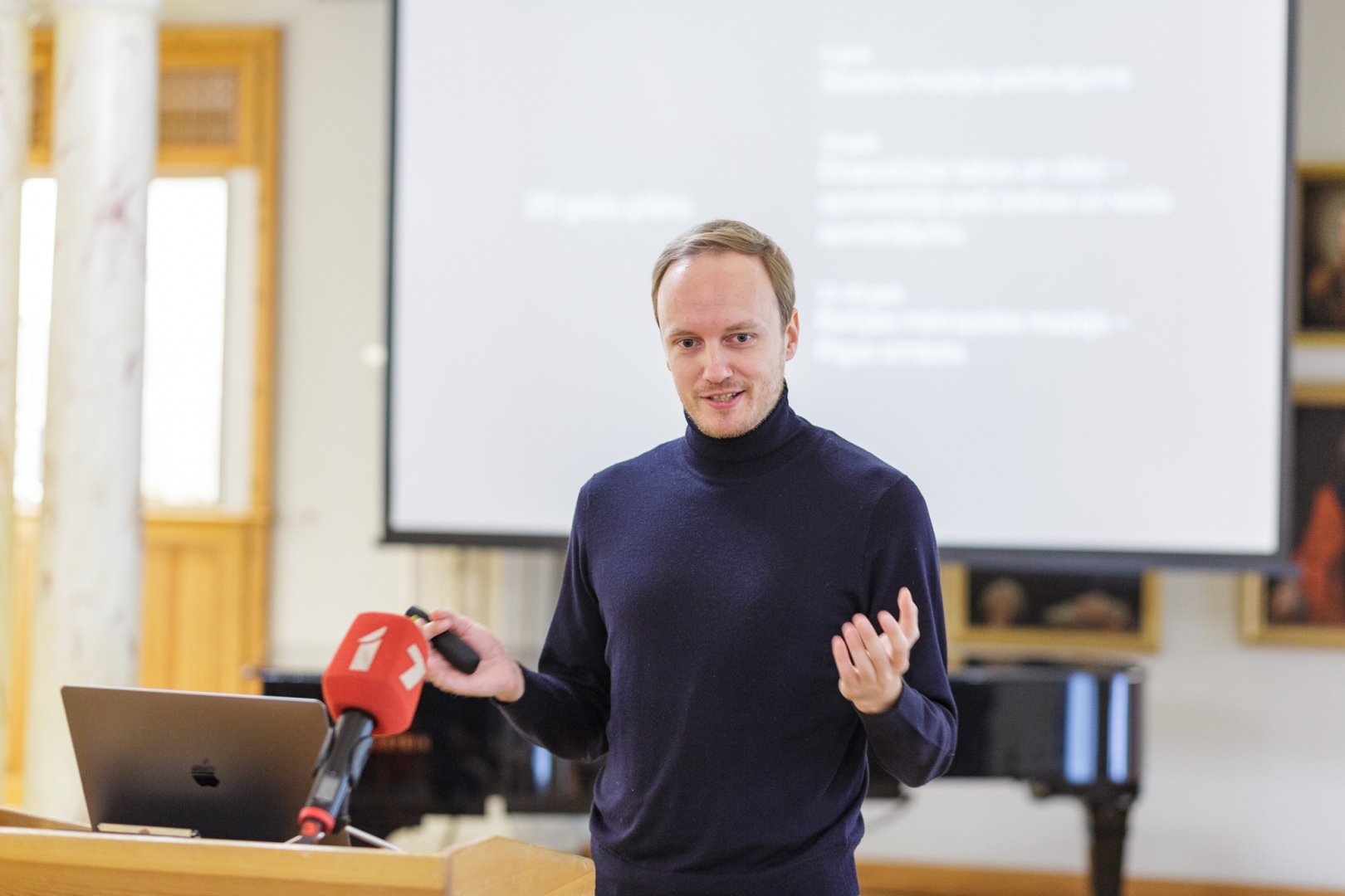 Kultūras ministrs Nauris Puntulis sveica muzeju apaļajā jubilejā, izsakot pateicību par darbu tā kolektīvam, RVKM direktore Liene Johansone – Kuzmina mediju pasākumā iepazīstināja ar muzeja jubilejas gada būtiskāko norišu kalendāru.