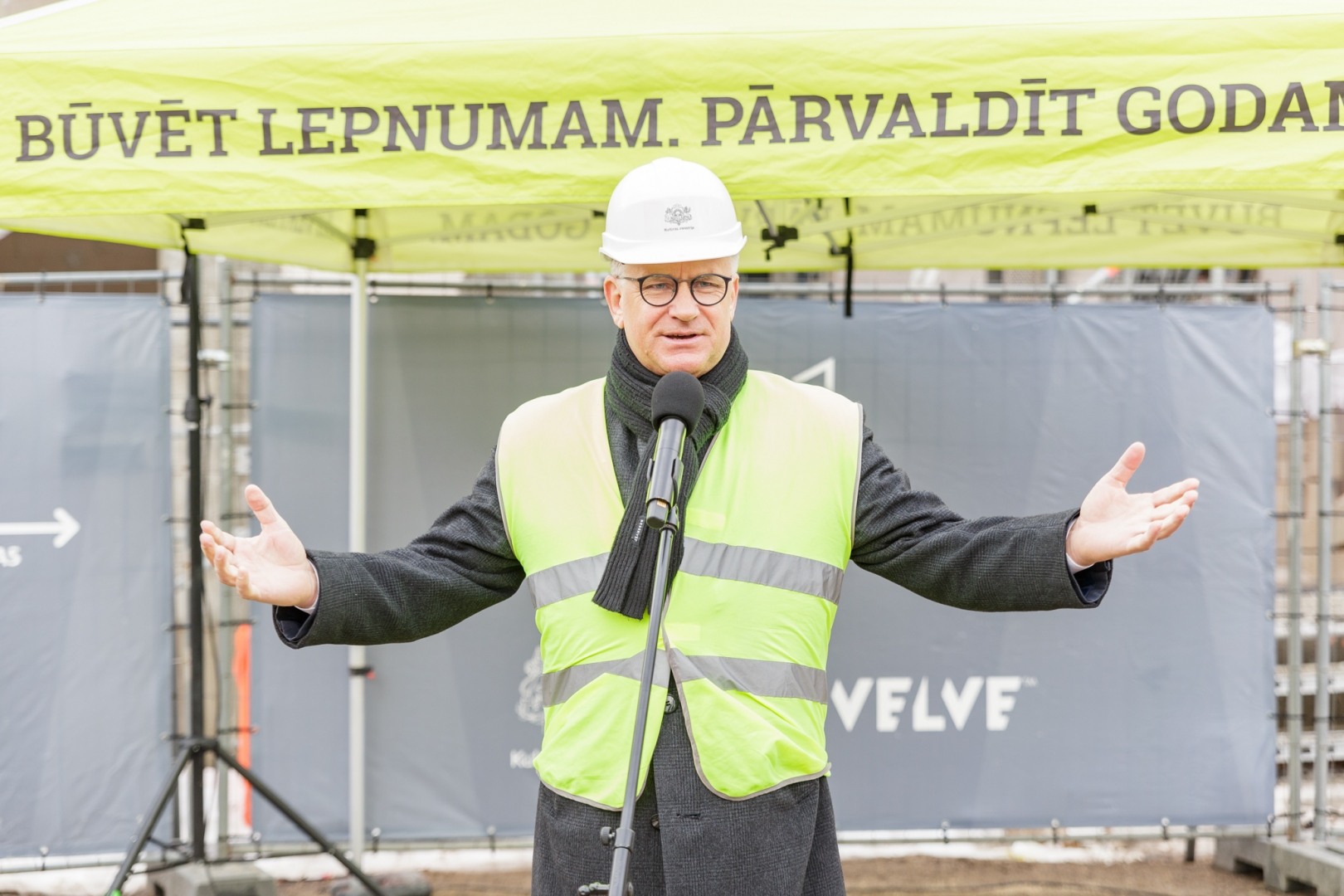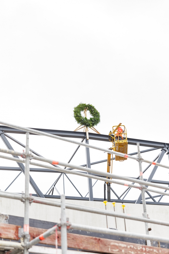 Skatuves mākslu dekorāciju darbnīcu un mēģinājuma zāļu kompleksa jaunbūves spāru svētki