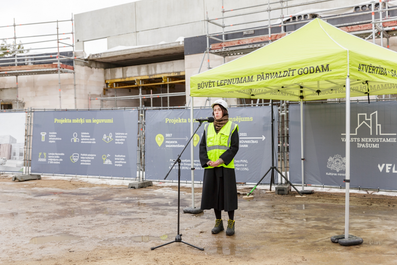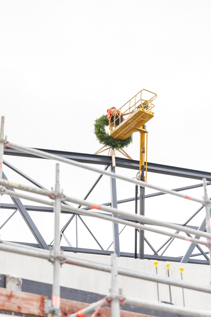 15. martā “Valsts nekustamie īpašumi” (VNĪ) kopā ar Kultūras ministrijas, Latvijas Nacionālās operas un baleta (LNOB), kā arī būvkomersanta “Velve” pārstāvjiem skatuves mākslu dekorāciju darbnīcu un mēģinājuma zāļu kompleksa jaunbūves korē, Meirānu ielā 2, Rīgā, novietoja spāru vainagu kā simbolu jaunbūves augstākā punkta izbūves sasniegšanai.