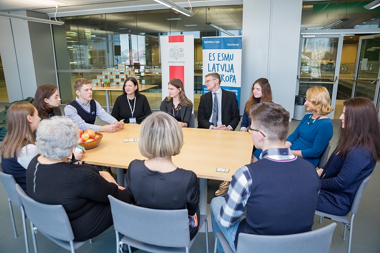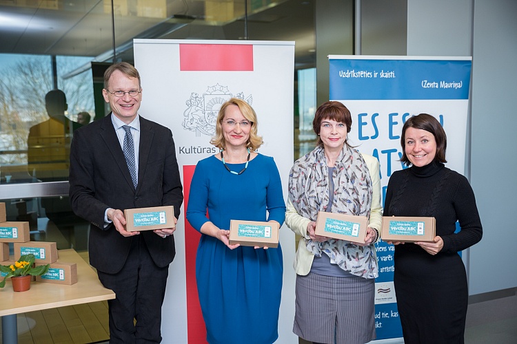 Trešdien, 30.01. Latvijas Nacionālās bibliotēkas telpā “– 15 +“ tika prezentēta jauniešu, tai skaitā mazākumtautību pārstāvju līdzveidota, starpdisciplināra galda spēle 8. – 12. klašu skolēniem "Vērtību ABC". Spēli izspēlēja kultūras ministre Dace Melbārde ar jauniešiem no Līvānu 1.vidusskolas un Rīgas 15. vidusskolas, biedrības “Eiropas Kustība Latvijā” prezidentu Andri Gobiņu un projekta “Eiropas pēdas Latvijā” vadītāju Lieni Valdmani.