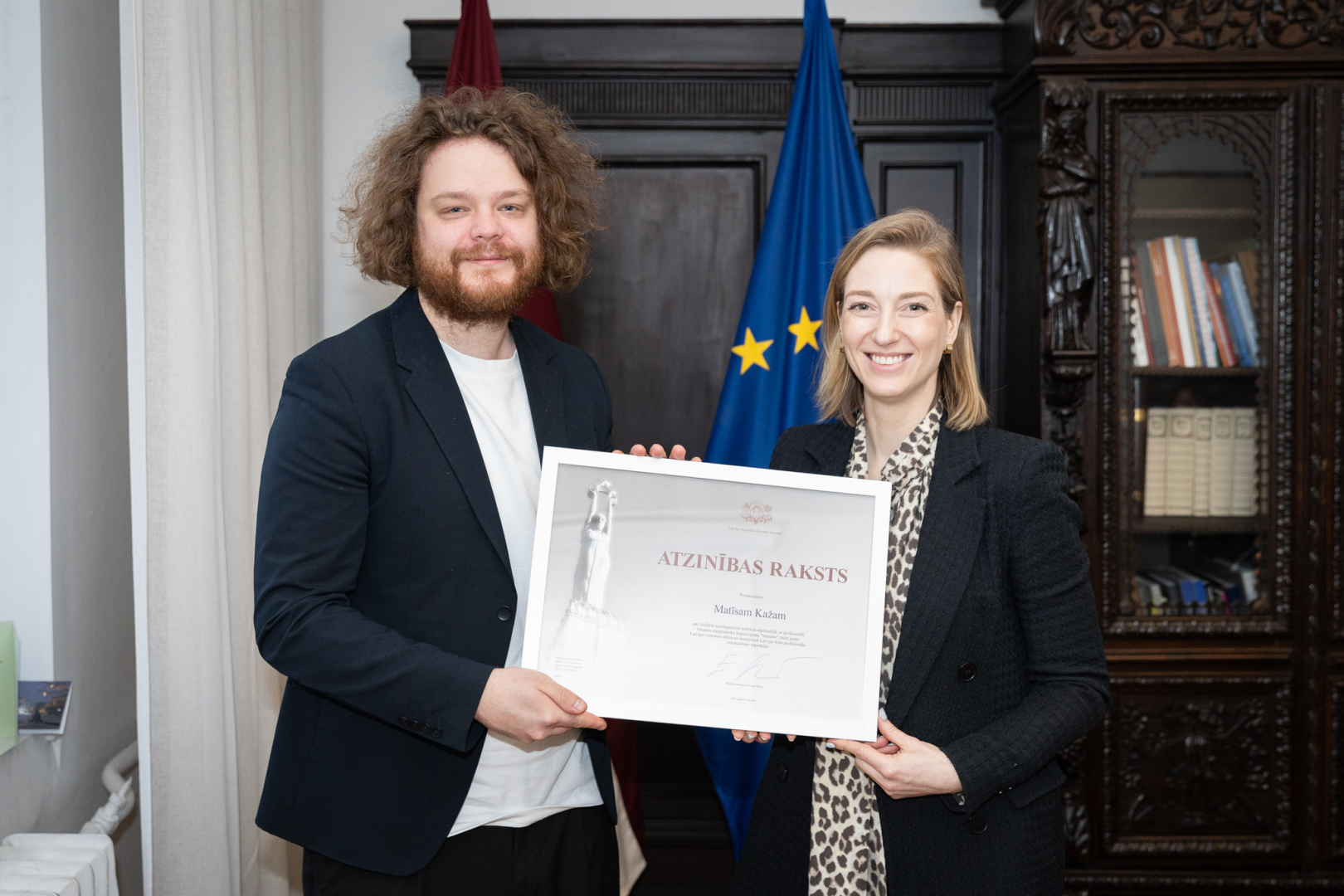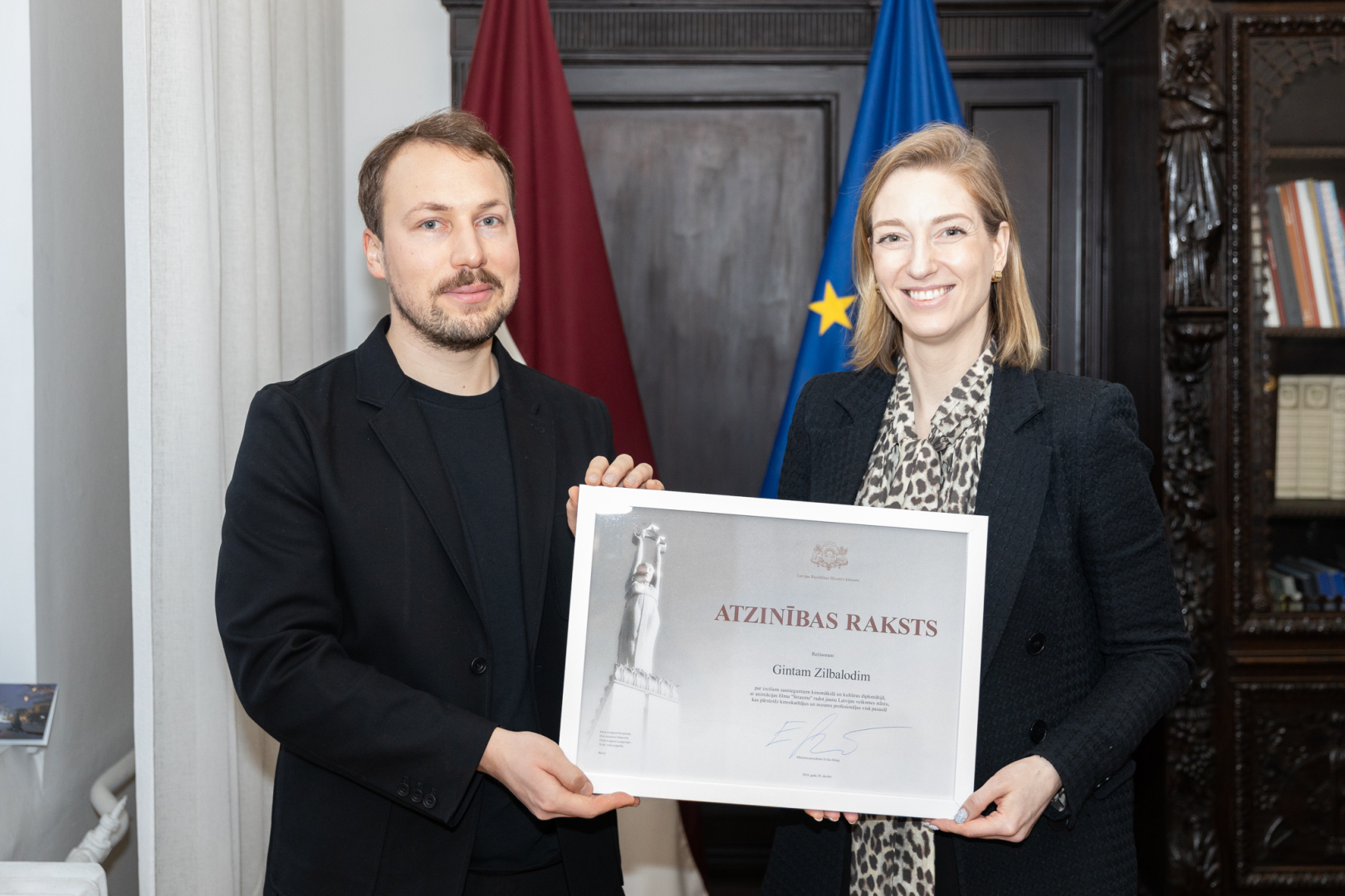 Kultūras ministre pasniedza režisoram Gintam Zilbalodim un producentam Matīsam Kažam Ministru kabineta Atzinības rakstu par izciliem sasniegumiem kinomākslā un kultūras diplomātijā, ar animācijas filmu "Straume" radot jaunu Latvijas veiksmes stāstu, kas pārsteidz kinoskatītājus un nozares profesionāļus visā pasaulē.