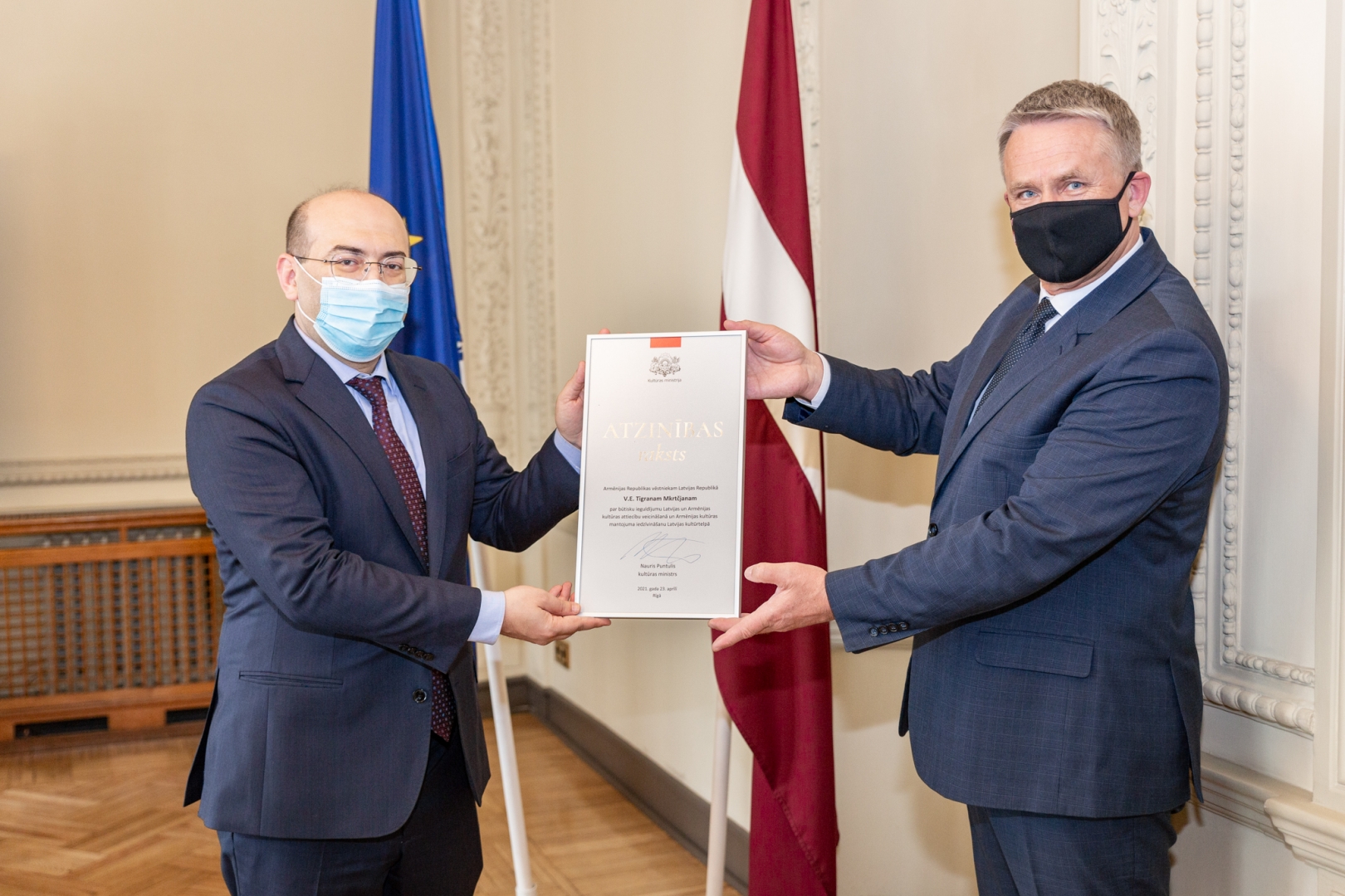 23.04. Kultūras ministrs Nauris Puntulis tikās ar Armēnijas vēstnieku Tigranu Mkrtčjanu un pasniedza Kultūras ministrijas Atzinības rakstu par nozīmīgu ieguldījumu Latvijas un Armēnijas kultūras attiecību veicināšanā un armēņu kultūras mantojuma vitalizēšanā Latvijas kultūrtelpā.
