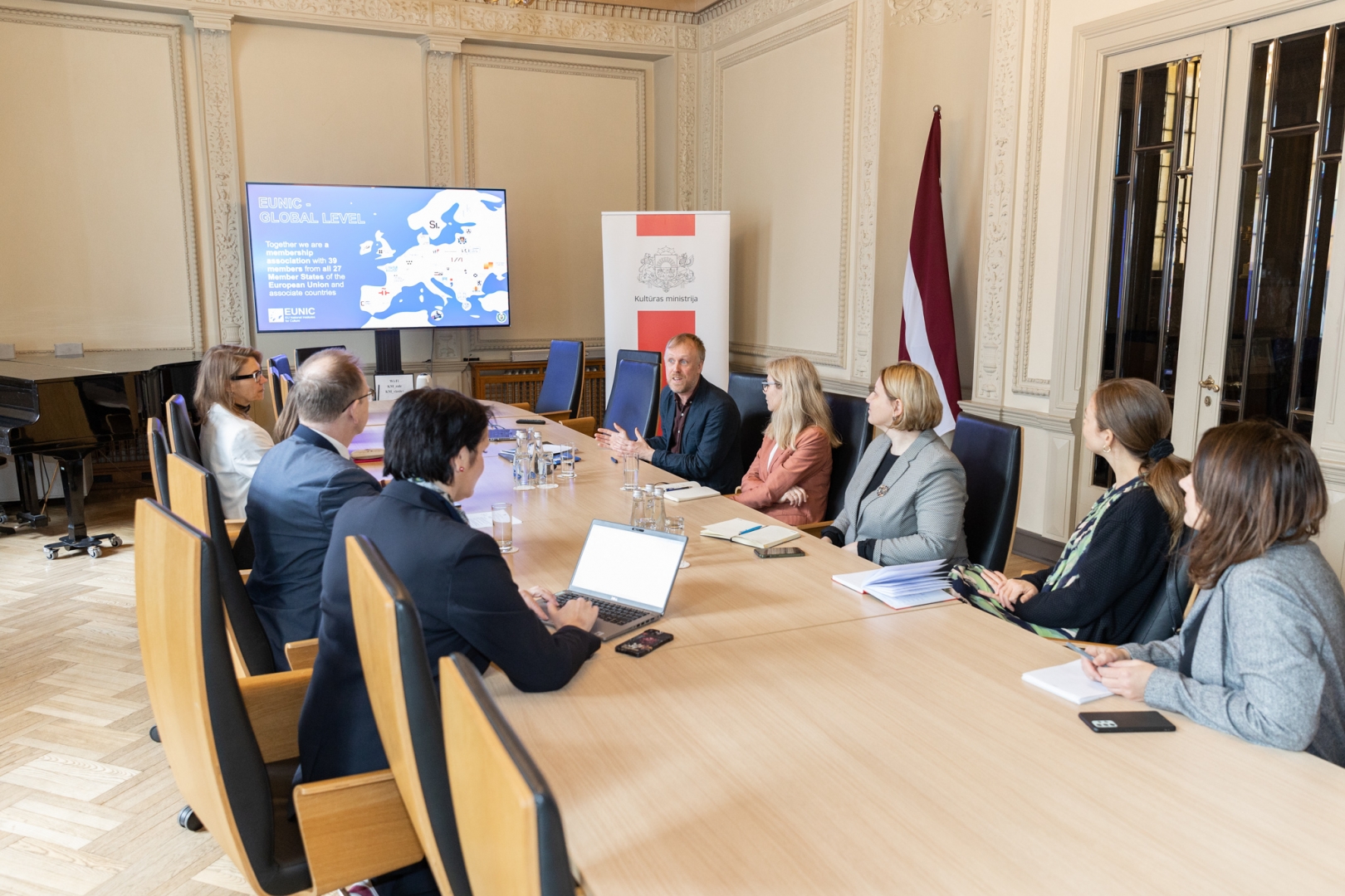 Tikšanās laikā pārrunāta EUNIC tīklojuma misija, pamatdarbības jomas un ētikas principi, Latvijas prioritātes un risināmie jautājumi sadarbībā ar EUNIC, kā arī Latvijas darba kārtības jautājumi EUNIC.